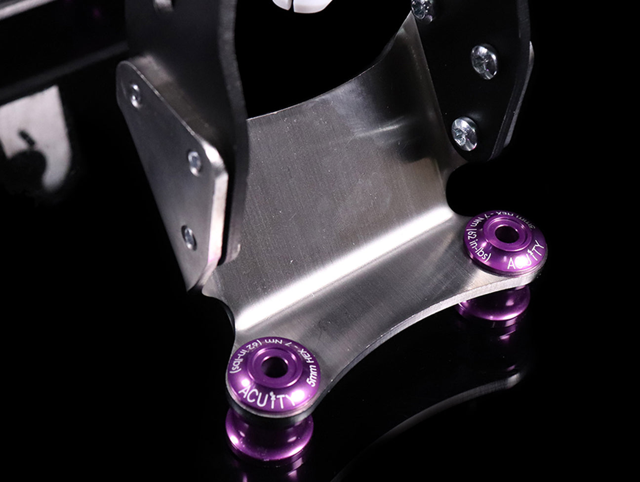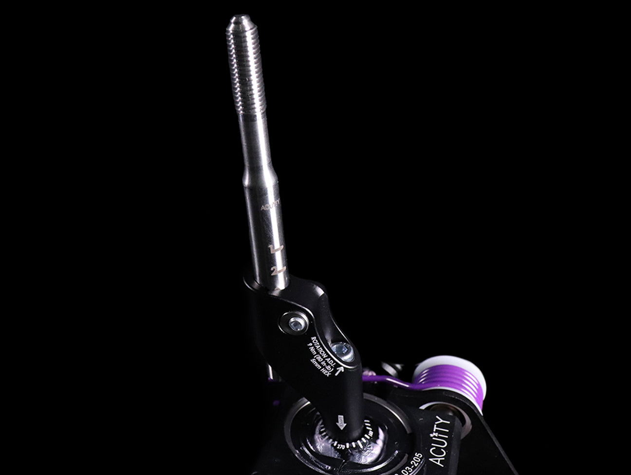 Easily the most capable shifter available for the 10th Gen Civic, the beauty of the ACUITY Fully Adjustable Performance Shifter is due in part to the careful attention to detail and rigorous testing that went into its nearly 2-year design process. Gear throw and gate spacing are independently adjustable and allow for mild to rather extreme reductions compared to stock. Using these adjustments, it's quite easy to tune the H-pattern spacing of your shifter to your exact liking. To permit the most personalized shift, the knob is both height and position adjustable, with laser markings indicating safe adjustment ranges.The shifter's frame is built from a careful combination of aluminum and stainless steel, to improve the frame's stiffness while being mindful of weight. A large-diameter, aluminum pivot ball in a wear-compensating, spherical race provides smooth shifting with minimal friction and great long-term resistance to play. Centering is quick, decisive and consistent, compliments of a thick, over-wound centering spring and re-engineered spring perches. The spherical joint in the rocker has been heavily upgraded over the OEM design to allow for wear-compensation, to avoid the play that typically develops in the OEM shifter. To aid in installation, this shifter is equipped with unique base bushings that feature an o-ring fastening design that allows them to stay affixed to the shifter.