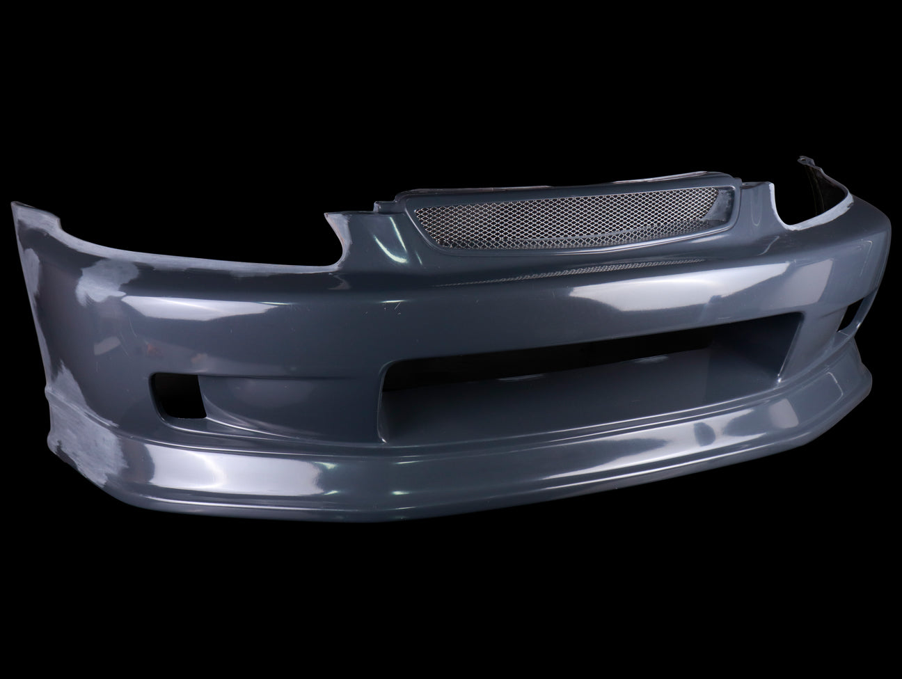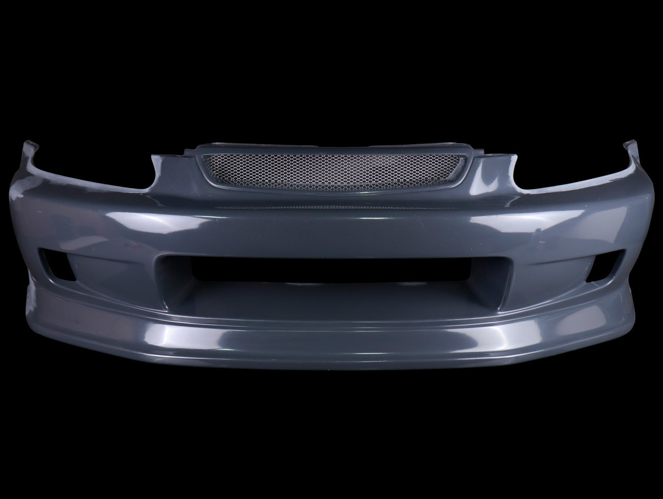 J-Blood Soft FRP (Soft FRP allows the bumper to flex) Front Bumper for 96-98 Civic. Race Track Inspired design with integrated lower lip spoiler and grille molded in (no need to buy the Civic Type R grille). Uniquely designed and this bumper will put your street or show car above the rest. Made from FRP with clear gel coat finish. Fits all 96-98 Civics Hatchback, Coupe, and Sedans.