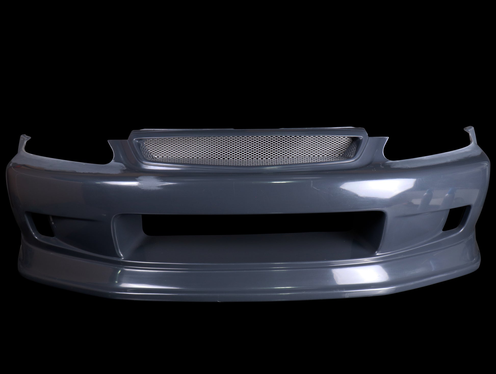 J-Blood Soft FRP (Soft FRP allows the bumper to flex) Front Bumper for 99-00 Civic. Race Track Inspired design with integrated lower lip spoiler and grille molded in (no need to buy the Civic Type R grille). Uniquely designed and this bumper will put your street or show car above the rest. Made from FRP with a clear gel coat finish. Fits all 99-00 Civics Hatchback, Coupe, and Sedans.