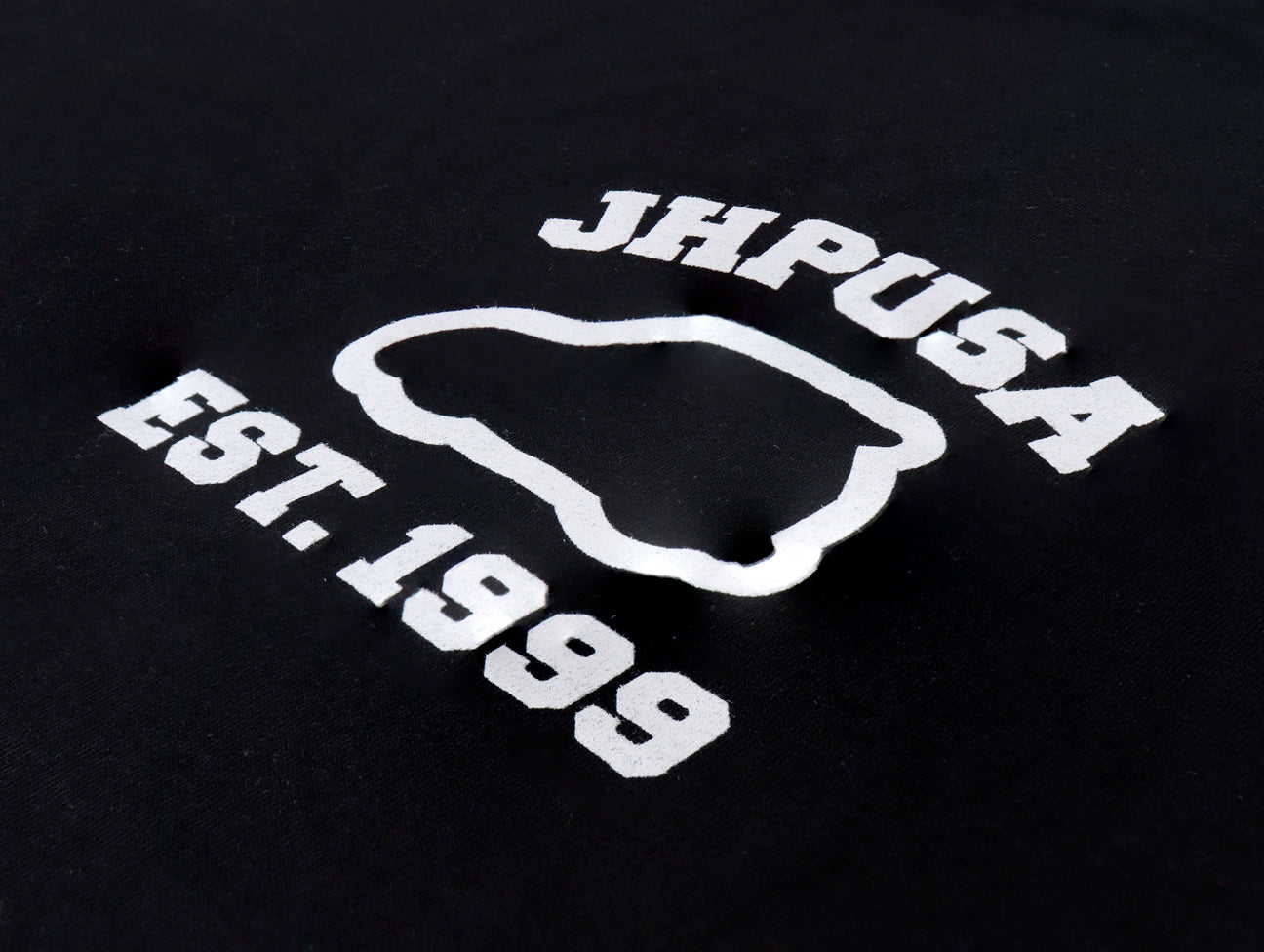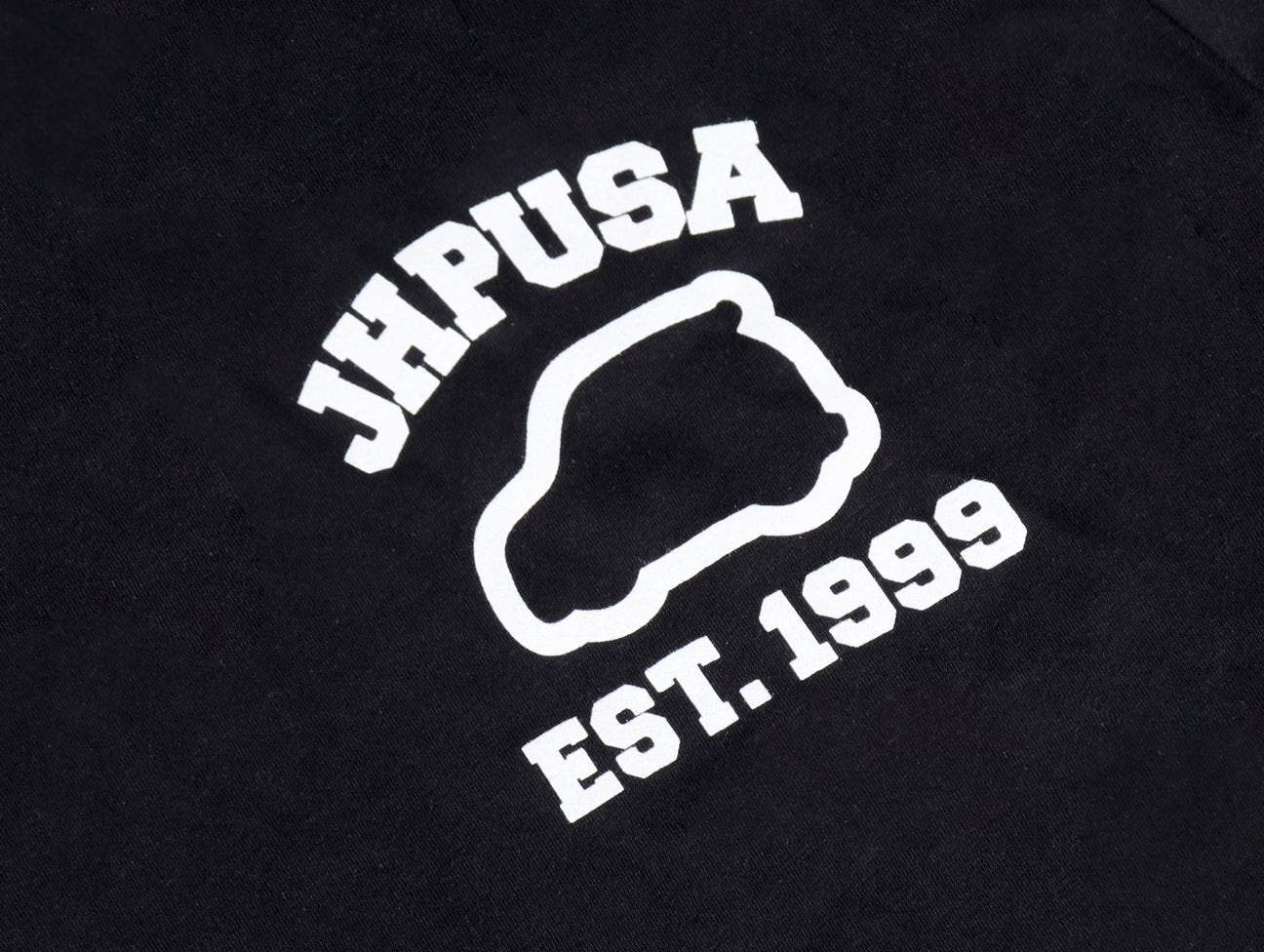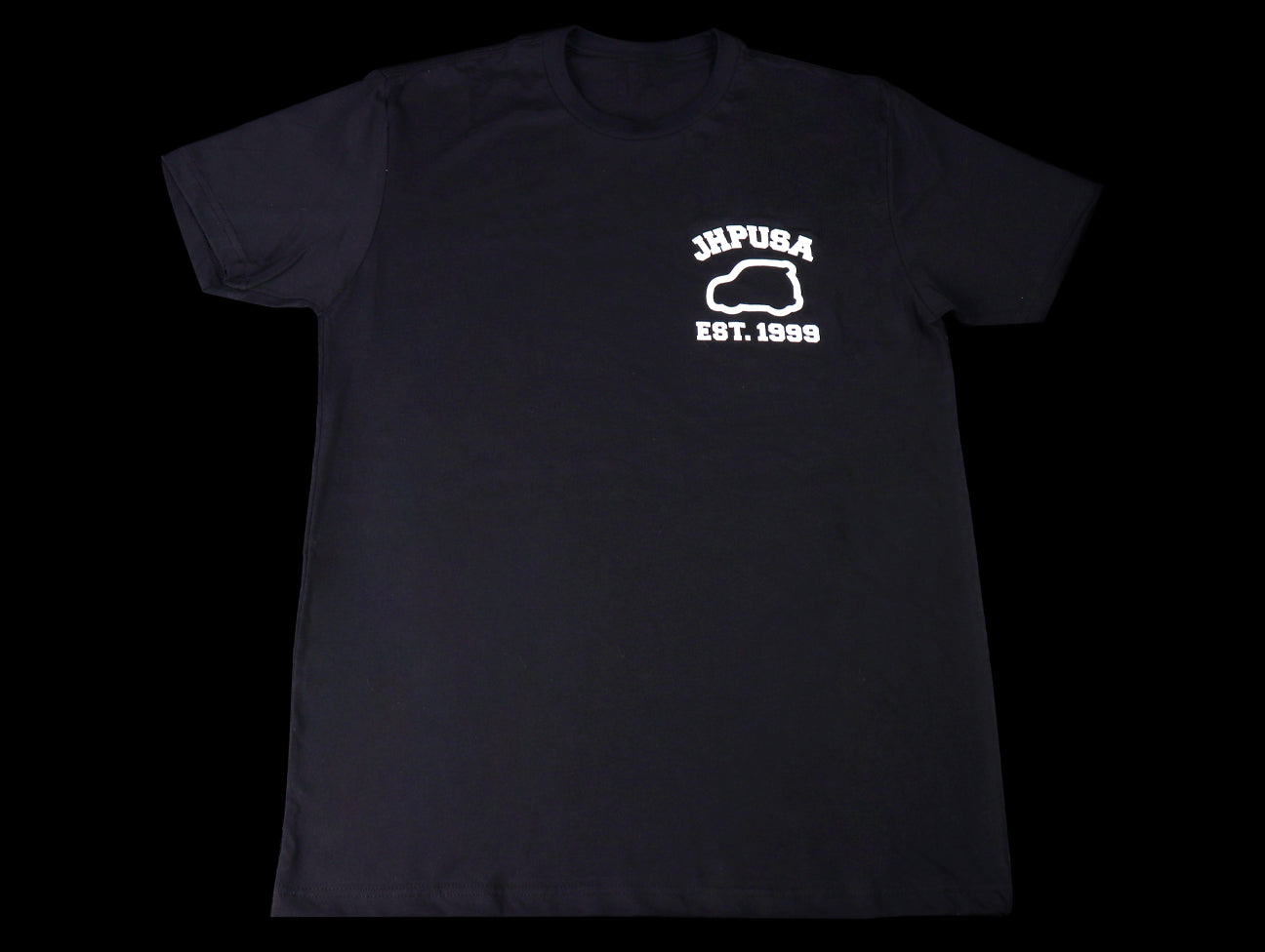 JHPUSA Club tee features a silhouette of our OG hatch logo. A simple style, soft cotton, lightweight and breathability black tee.