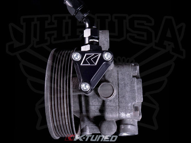 The K-Tuned Power Steering Line Kit is a replacement kit for the RSX, and some K-swap vehicle applications. The line and fittings are designed to handle the extreme pressures that the power steering pump (which can see over 1,000 psi). This offers a clean and simple look while retaining functional power steering. The line features swivel ends and allows it to clear the stock mount stud. You can purchase the fitting on the pump alone if you are doing a custom setup.