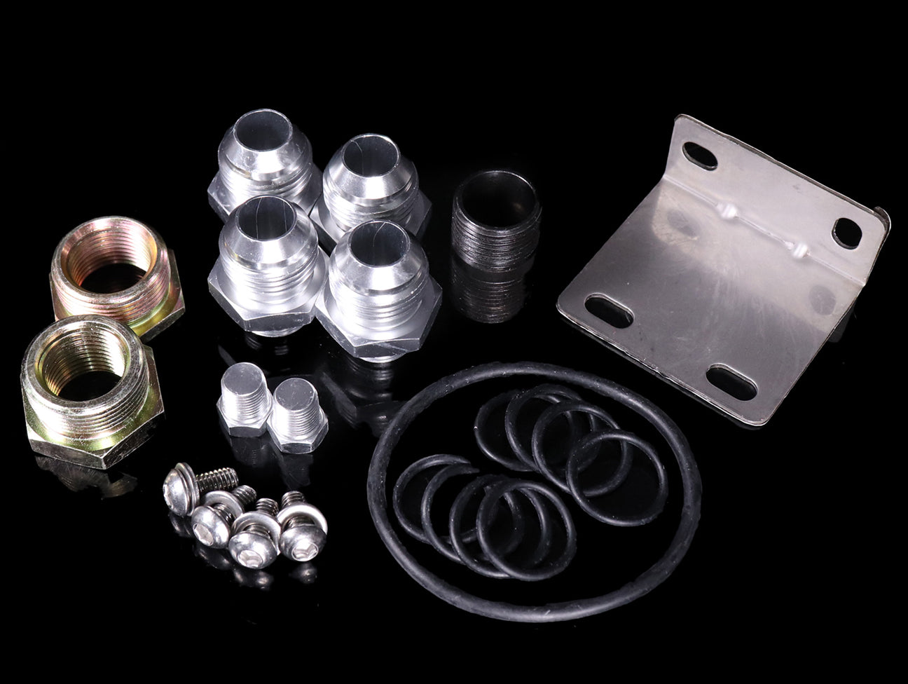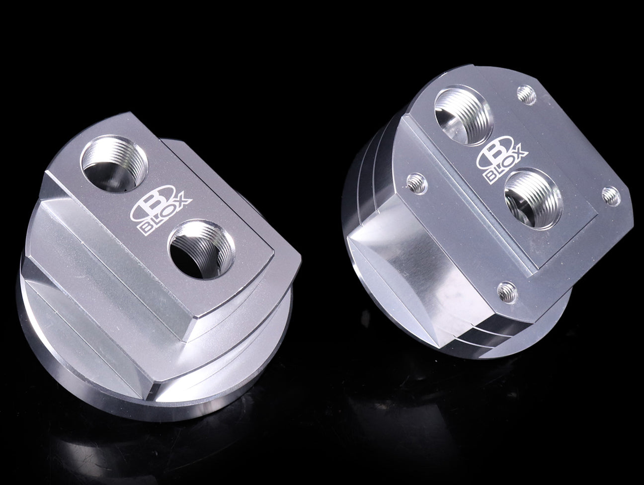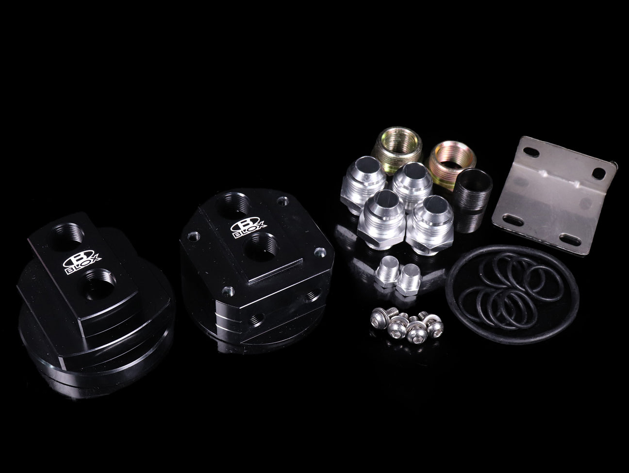 Blox remote Filter Relocation Kit is CNC-machined from billet aluminum and is superior to cast counterparts. This relocation kit is ideal and a must have for the performance enthusiast:whether you simply want to relocate your factory oil filter for easier access and convenience or need extra diversity when building and LS/VTEC or turbocharged application.