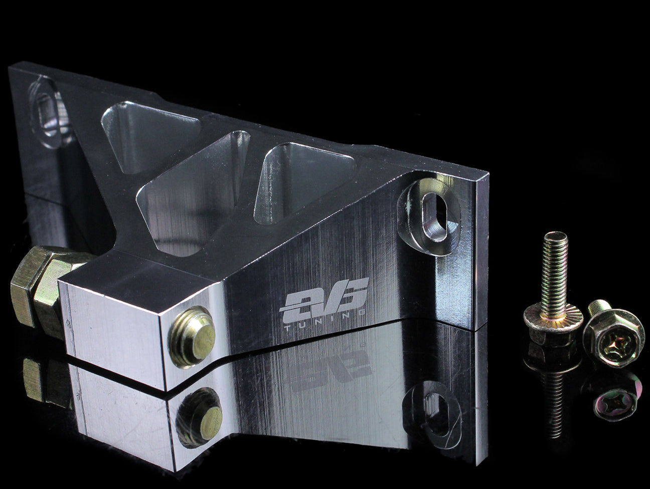 EVS Tuning Master Cylinder Brace is made of 6061-T6 Aluminum billet. It mounts onto the inboard side of the shock tower housing and prevents the brake master cylinder from moving forward (caused by flex in the firewall and brake booster) when excessive pressure is applied to the brakes under hard driving conditions, such as road racing and autocross. The overall result is a greatly improved brake feel and sensitivity, therefore reducing brake fade even for everyday street use!