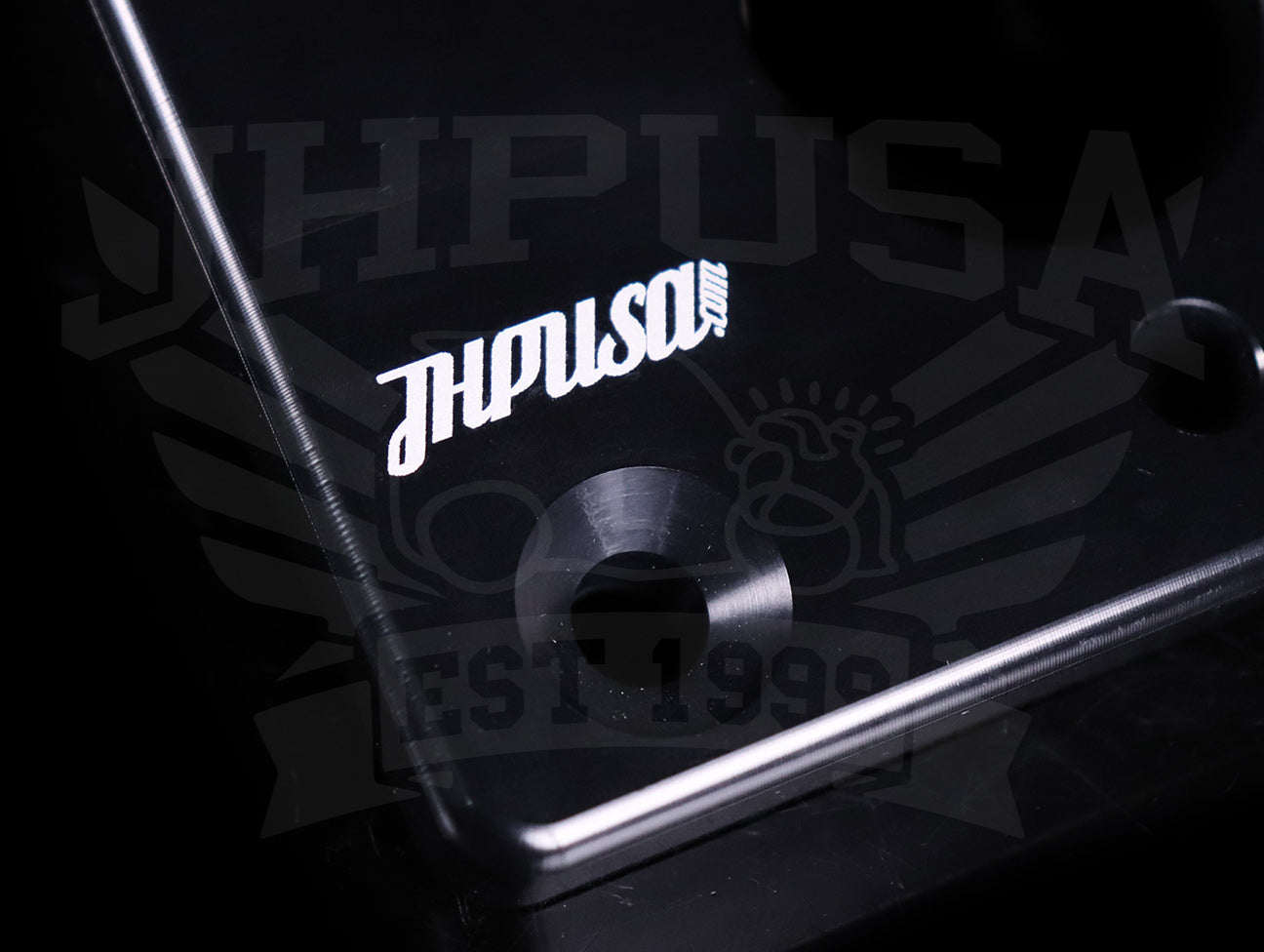 The JHPUSA V2 brake master cylinder booster delete plate allows elimination of the OEM brake booster and the adaptation of a Wilwood/Tilton compact brake master cylinder. Our V2 BMC delete plate features updated laser etched logos on the front and top edging with refinished finish. This part is a must for your tucked engine bay project!