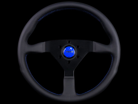 Momo Monte Carlo Steering Wheel - Black Leather w/ Blue Stitch