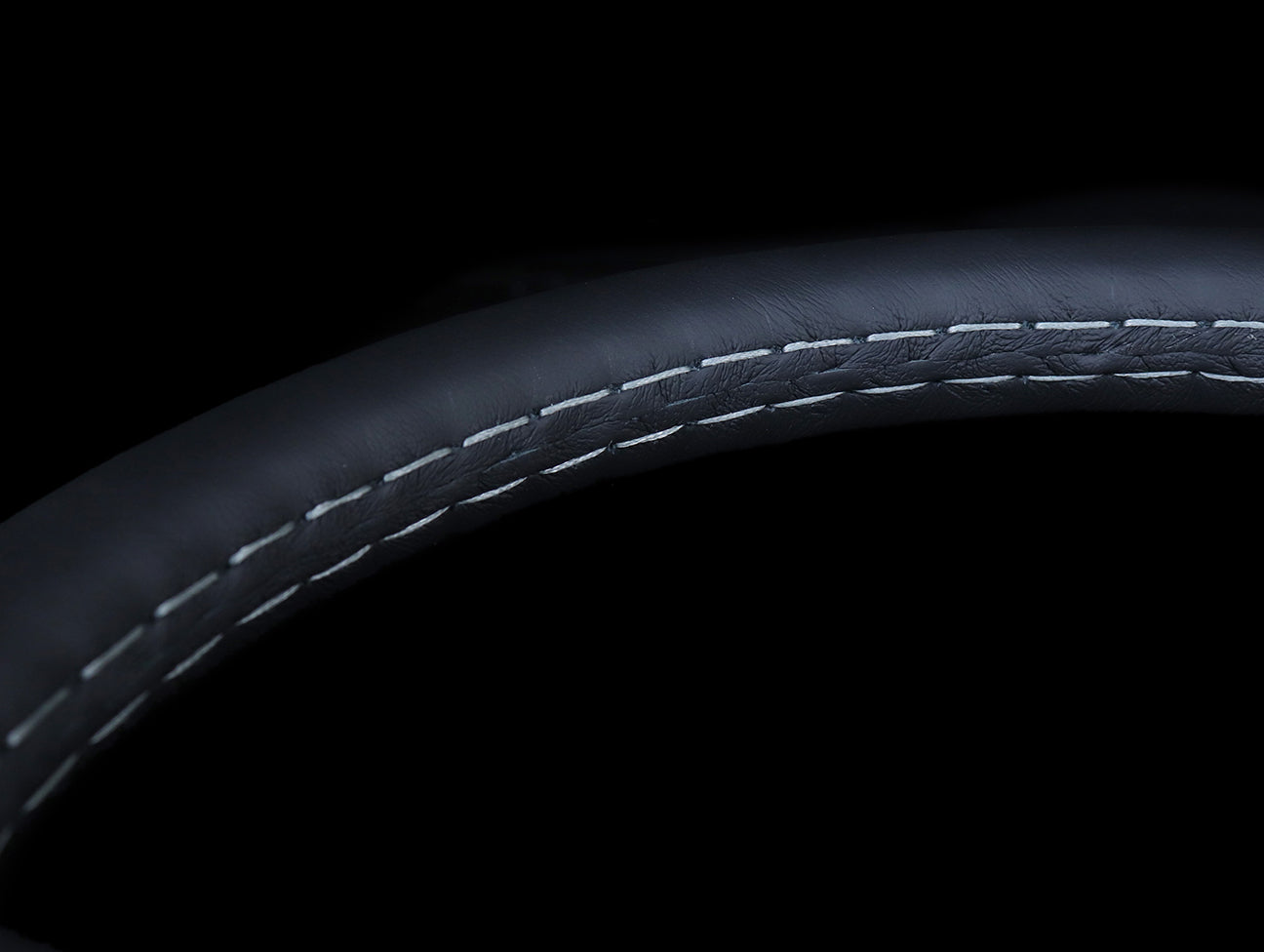 This Nardi Classic steering wheel has a black leather hand grip, grey stitching, anodized silver spokes, matching silver center ring, hardware, and Nardi horn button.