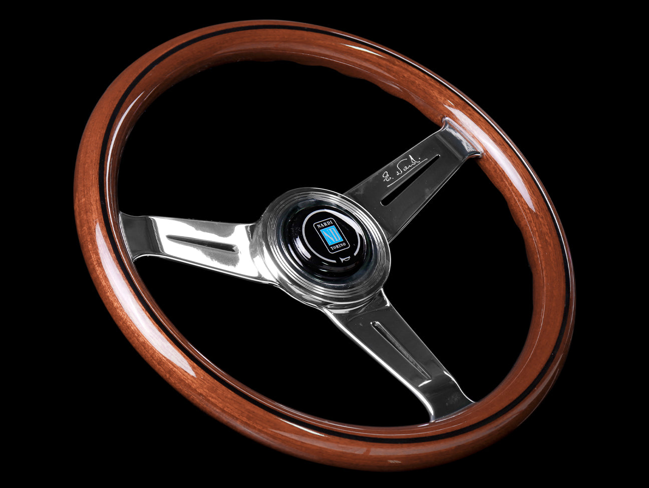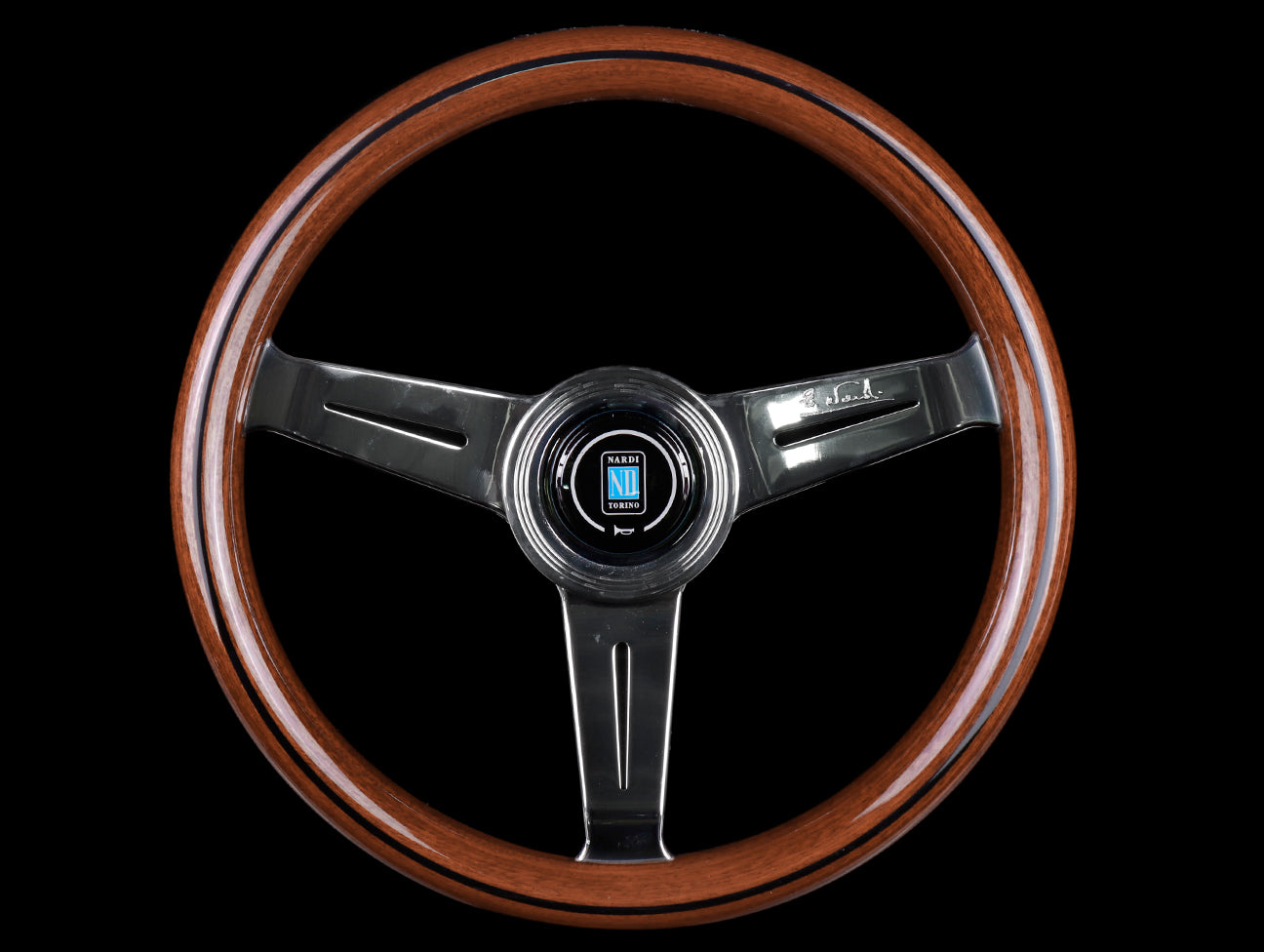 This Nardi Classic wood steering wheel offers polished spokes, a smooth finished wooden grip, and a genuine classic Nardi horn button.