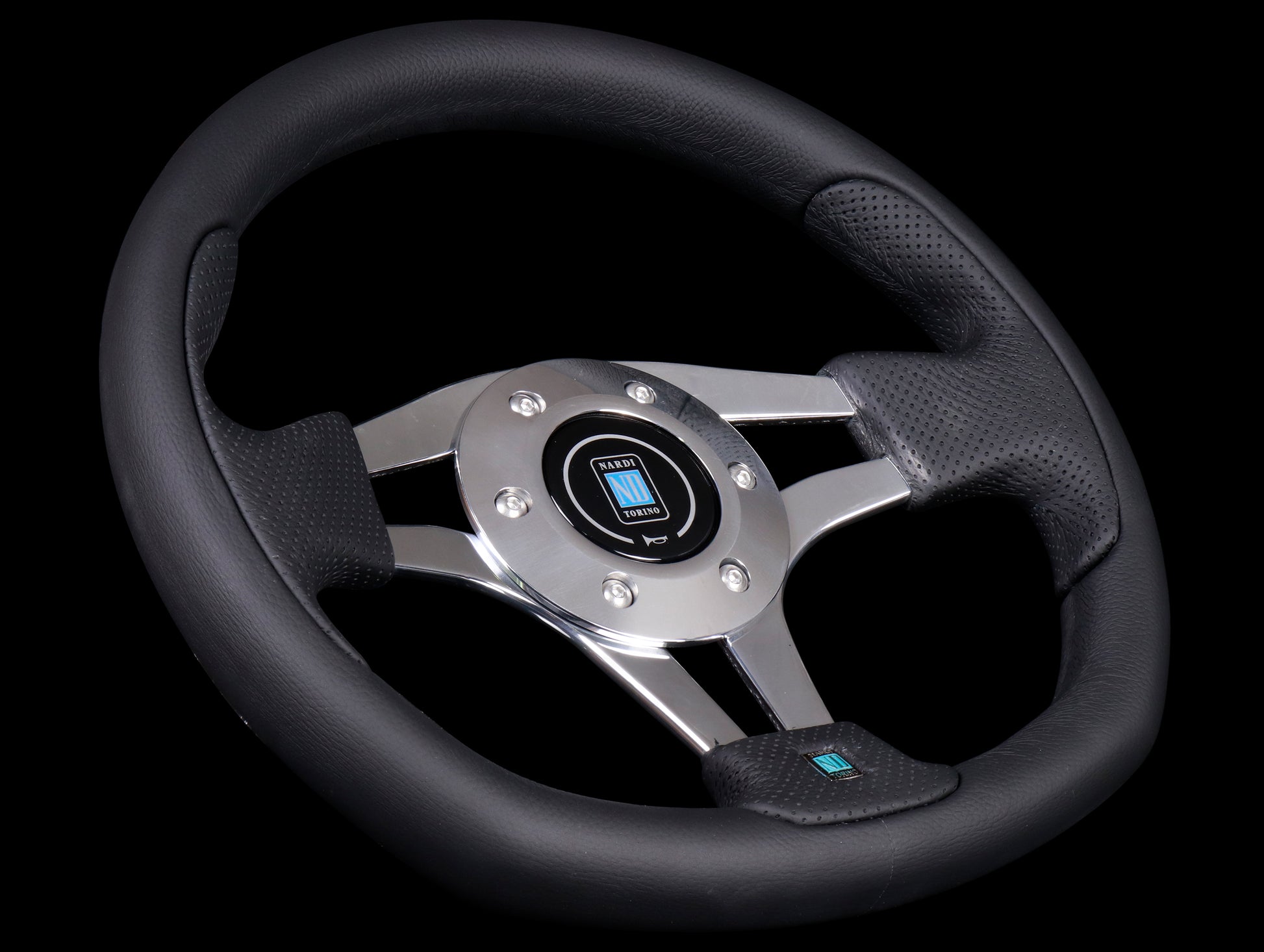Universal 3-Spoke Pasquino Leather/Perforated Leather Black Steering Wheel (6316.30.3071) by Nardi®. Polished Trim Ring with Screws at Sight. Wheel Diameter: 11.81" / 300mm. Grip Material: Leather/Perforated Leather. This product is made of high-quality materials to serve you for years to come. Designed using state-of-the-art technology and with customers in mind, this product by Nardi will last a lifetime. It will meet your needs and deliver great quality at an affordable cost.