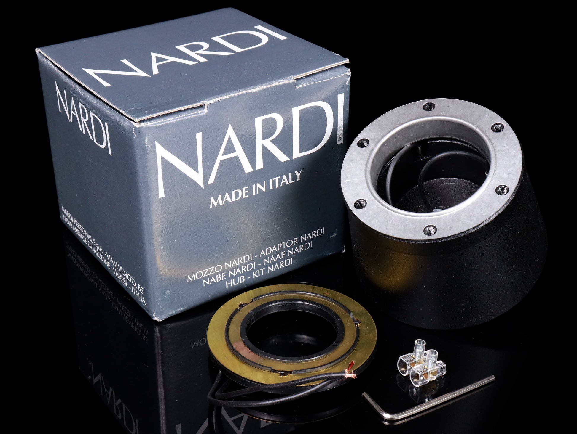The Nardi-Personal steering wheel adapters use a unique design that incorporates a collapsible steel center section for added safety as well as a the correct PCD pattern for both Nardi and Personal steering wheels. This is covered by a plastic bellows to give it a professional finished appearance.