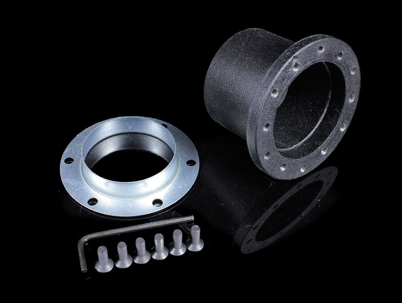 The Nardi-Personal steering wheel adapters use a unique design that incorporates a collapsible steel center section for added safety as well as a the correct PCD pattern for both Nardi and Personal steering wheels. This is covered by a plastic bellows to give it a professional finished appearance.