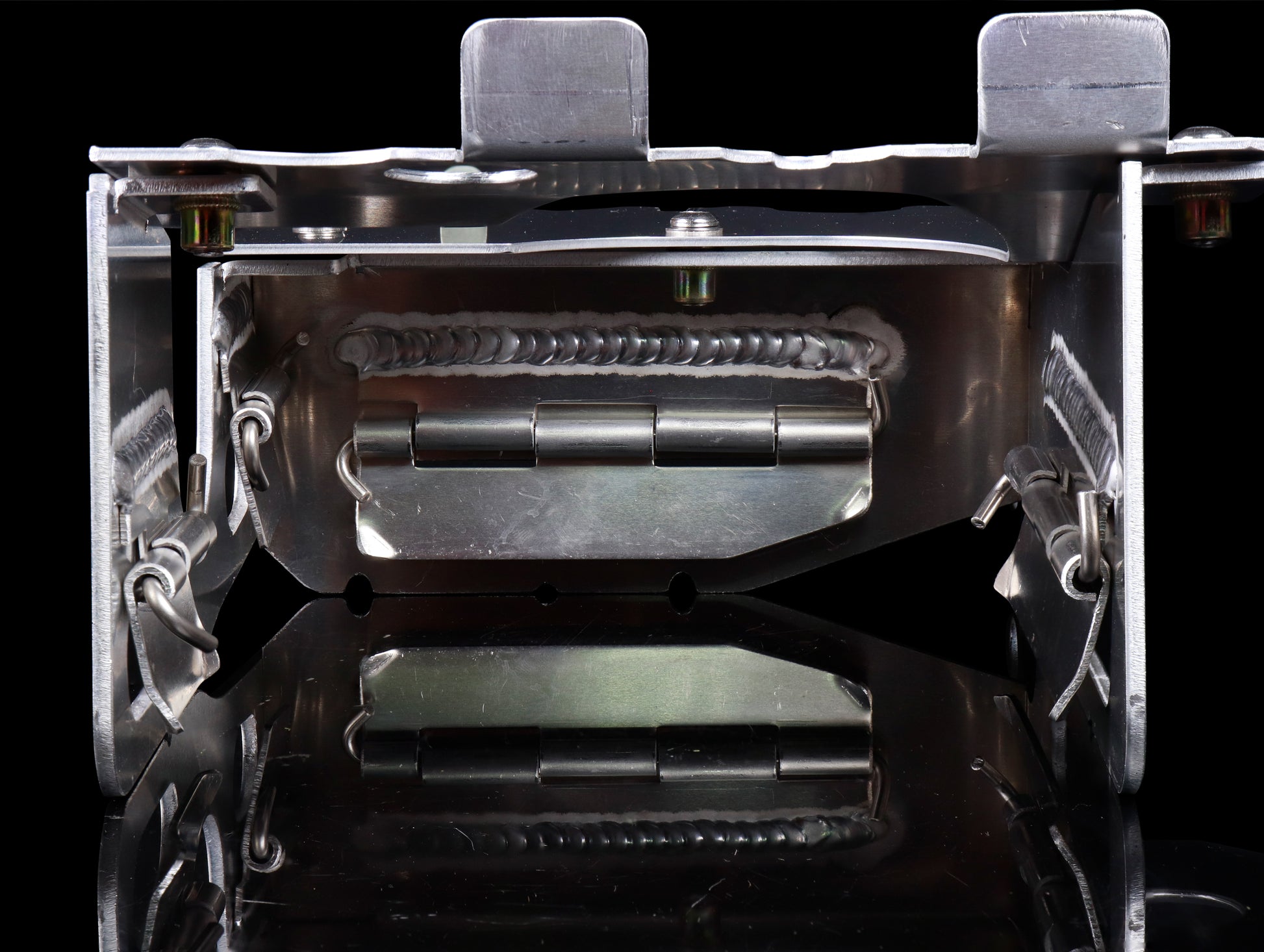 This baffle system can be installed by simply pushing the baffle system down into the pan securing itself with the 5 pressure fit tabs located on the removable top plate. If you desire a more permanent installation the lower section can be welded into the pan leaving the top plate removeable for any future cleaning / service.