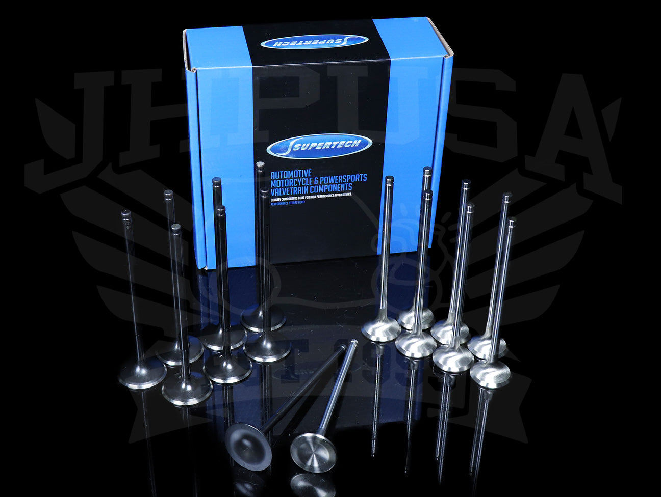 Supertech valves are made from one piece forged stainless steel. Intake valves are made in SAE EV8 (UNS S63008) and exhaust valves are made from Inconel 575.