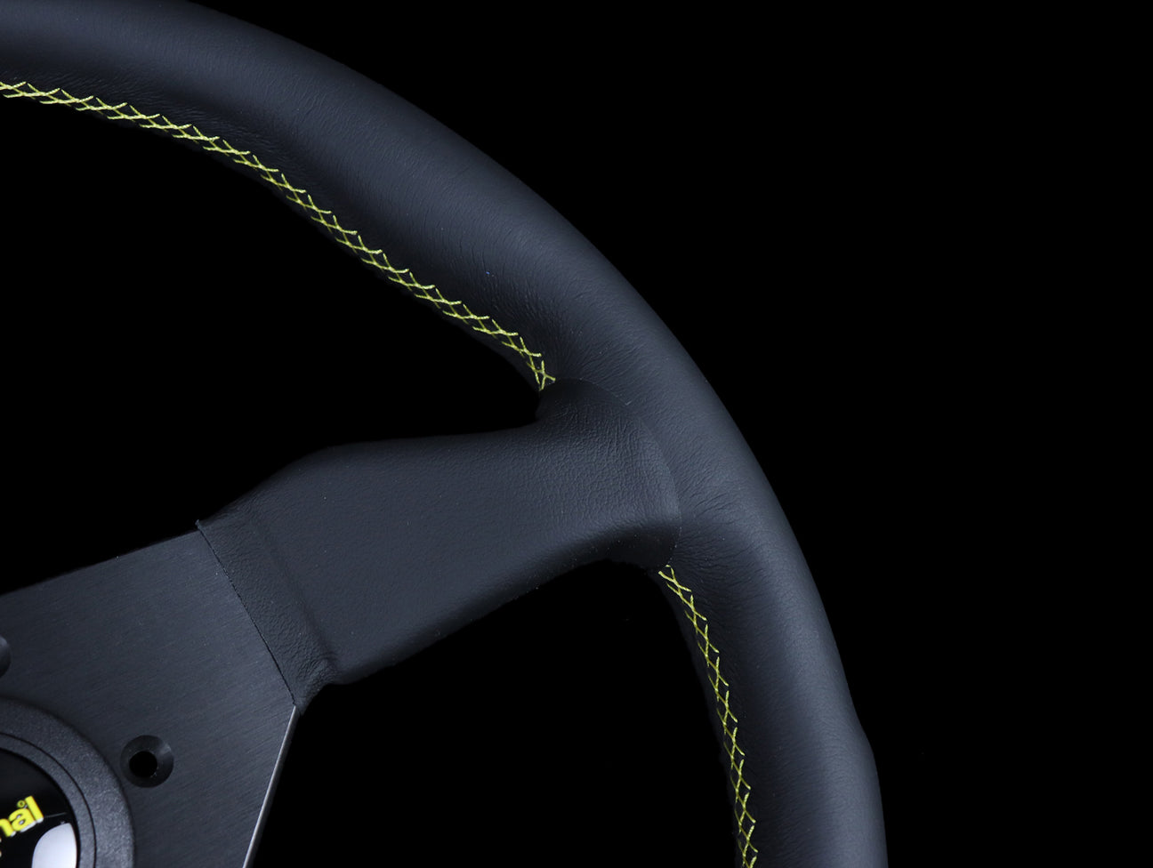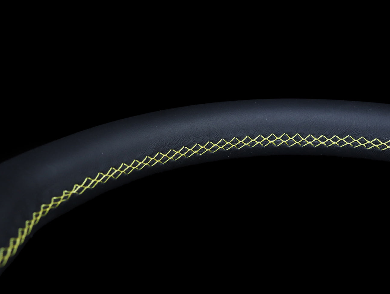 Personal Grinta 330mm Steering Wheel - Black Leather / Yellow Stitch