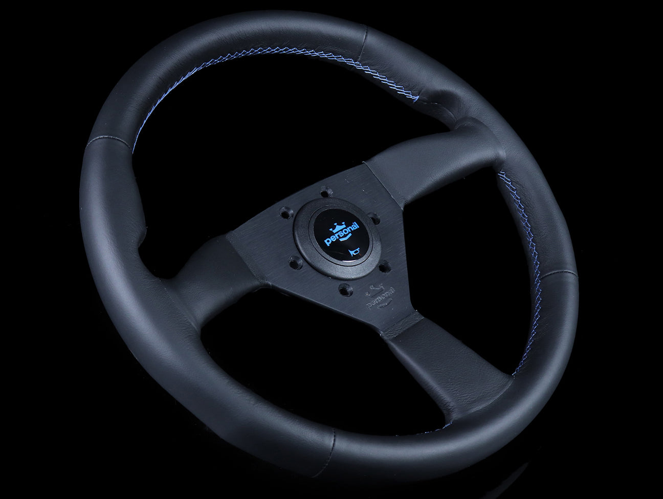 Personal Neo Eagle 340mm Steering Wheel - Black Leather / Blue Stitch