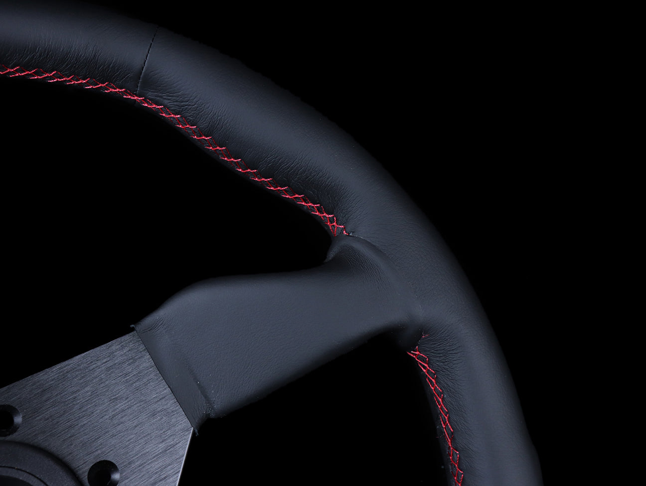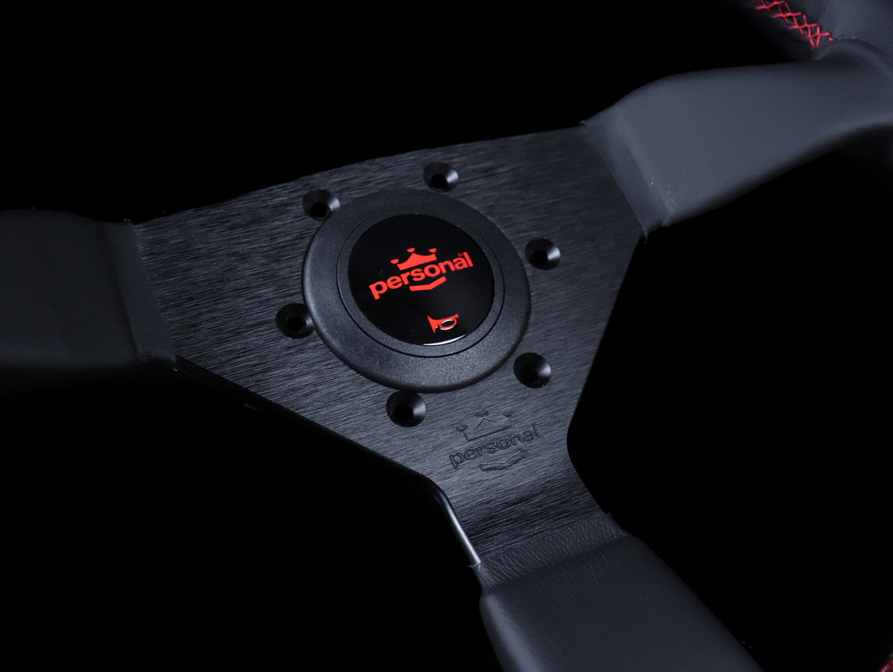 Personal Neo Grinta 350mm Steering Wheel - Black Leather / Red Stitch