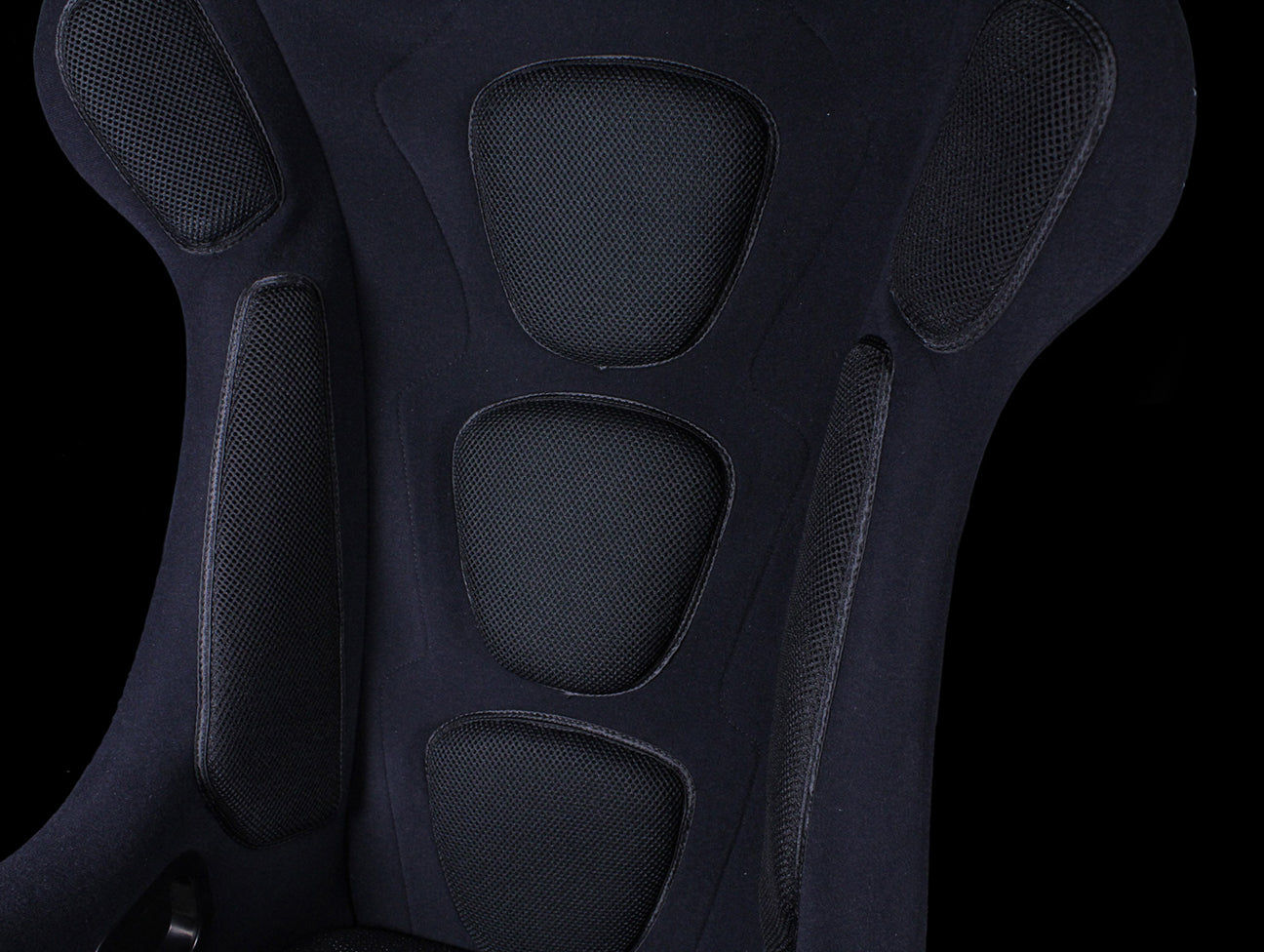 Hans® compatible, range-topping, fiberglass seat. Seat shell visible on the rear, front portion upholstered in black fabric. The particular shape of the upper part reduces lateral movements of the helmet and protects the driver’s head. Anatomical backseat cushions, designed to give the maximum comfort and the best air flow, helping to reduce driver fatigue during long sessions.The exclusive Airnet® technical material covers all back cushions, and Kinder Point on the seating area provides the best possible grip. Removable double leg cushion to optimize support. 5 seat belt openings. Side mount.