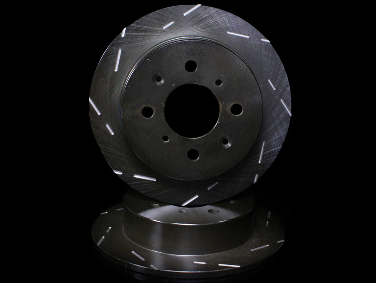 - Angled slots on rotor surfaces allow superior expulsion of heat, water, brake dust, and friction gases