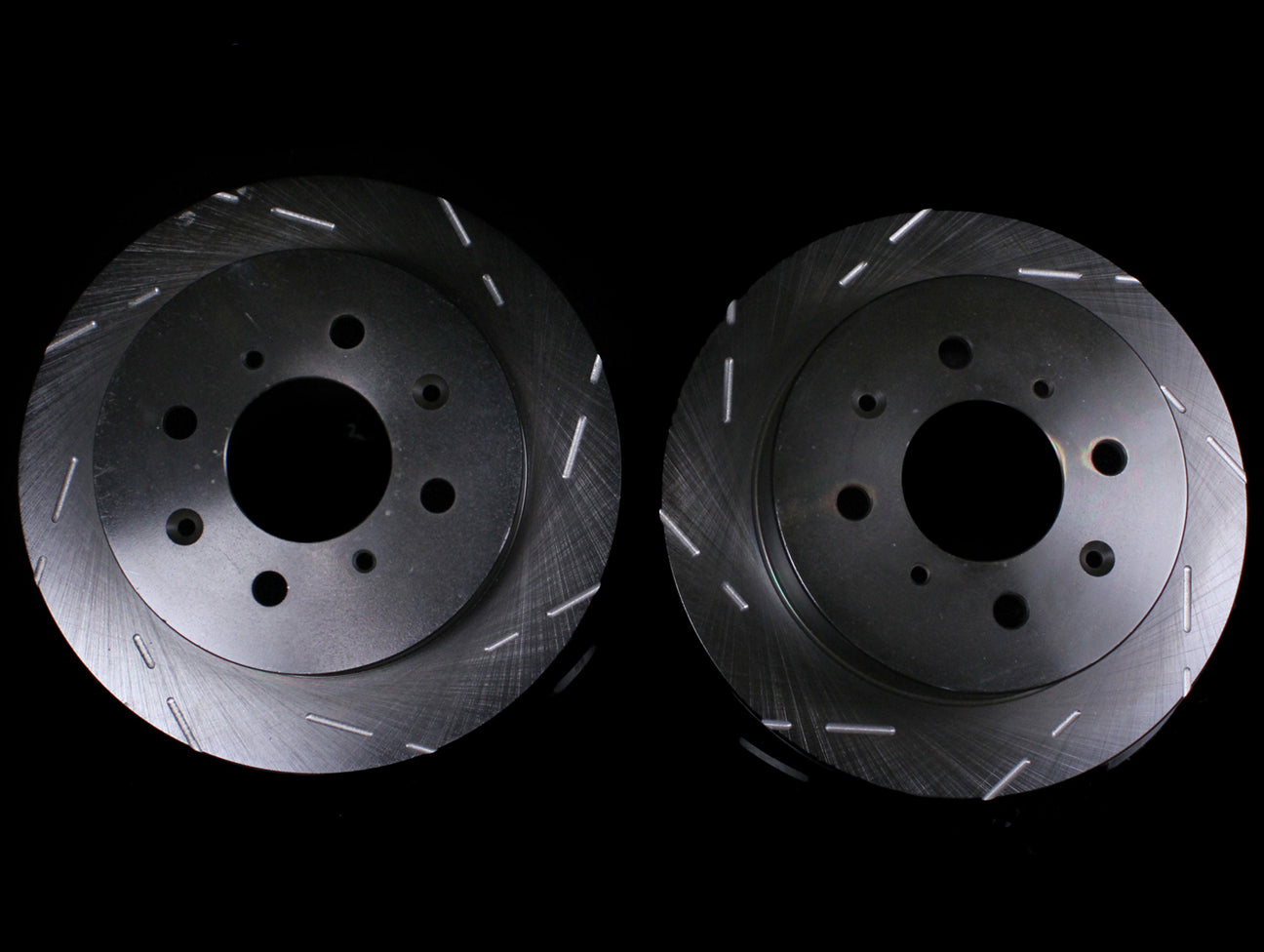 • Angled slots on rotor surfaces allow superior expulsion of heat, water, brake dust, and friction gases