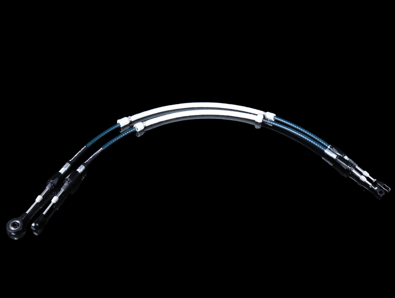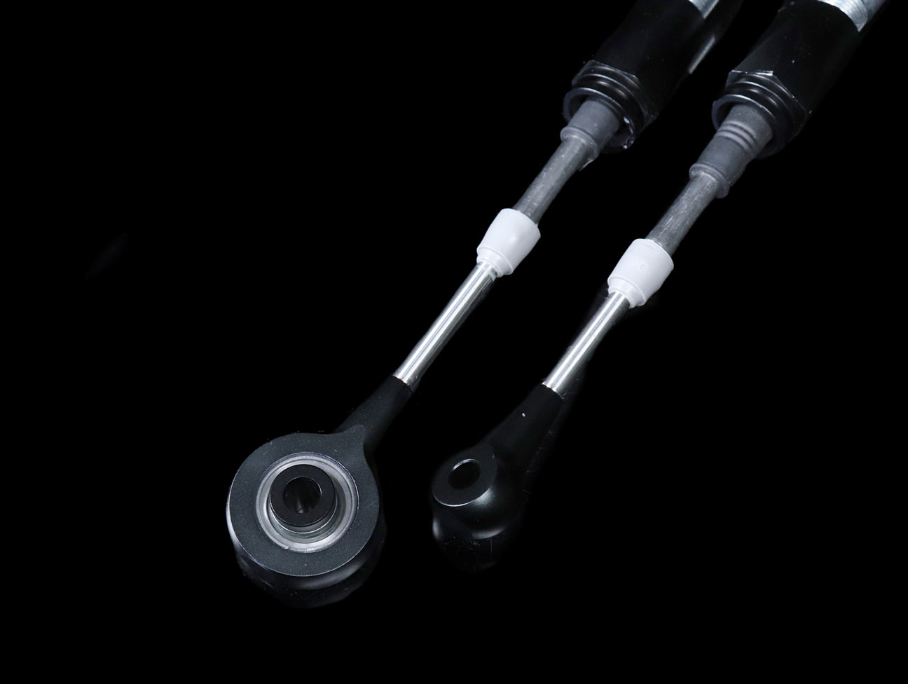 The Hybrid Racing cables are a performance upgrade replacement for stock OEM cables. The solid rod ends, 30% thicker cable core and spherical bearings give the Hybrid Racing cables a firmer, tighter feel over OEM cables resulting in fewer missed shifts and a more connected feel to the chassis.