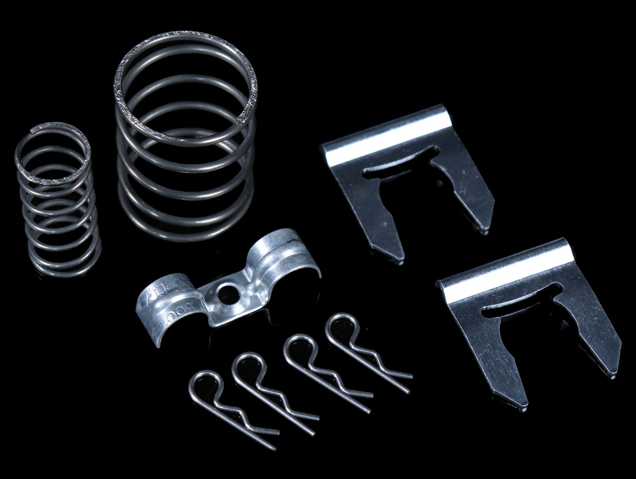 The kit comes with two shifter cables; each shifter cable set includes two cotter pins, clips for the shifter end, and transmission selector lever springs. The upgraded gear selector springs aren't required but are recommended to further improve the feel of your gear changes