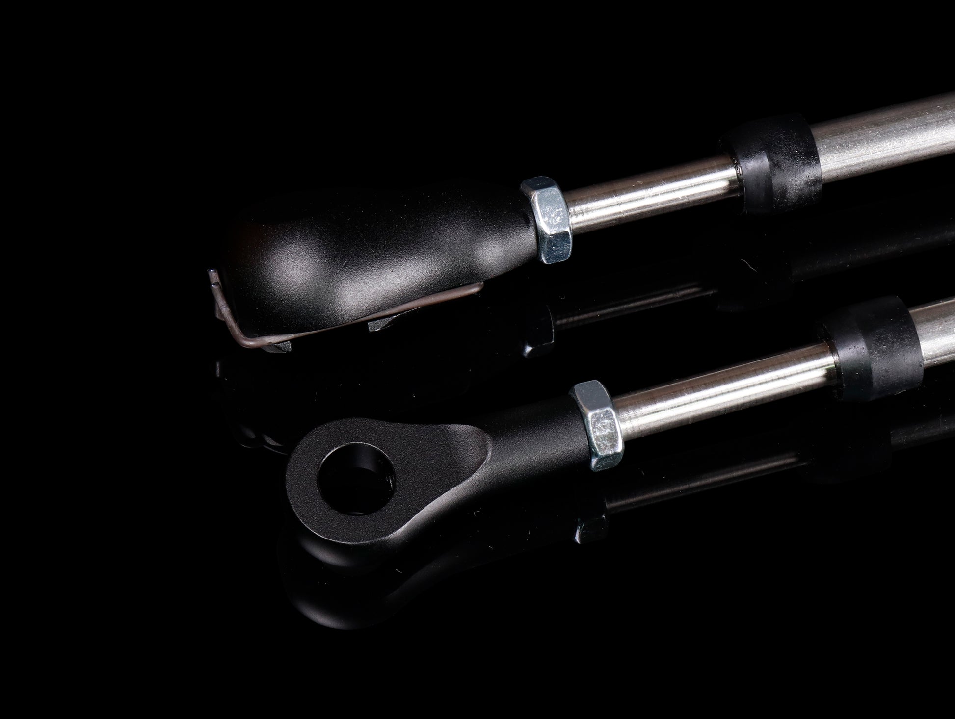 Hybrid created a cable to give people peace of mind and improved driving performance when they shift hard and during demanding racing applications, and the Hybrid Racing performance cables achieve this goal! Other notable features of the Hybrid Racing cables are spherical bearings, stainless steel push rods, and upgraded stainless steel swivel support tubes (oem are plastic) that are known to break on the OEM cables. All of the rod ends and mounting bushings are CNC machined 6061 aluminum, then black anodized before being laser etched with the Hybrid Racing logo and flair.