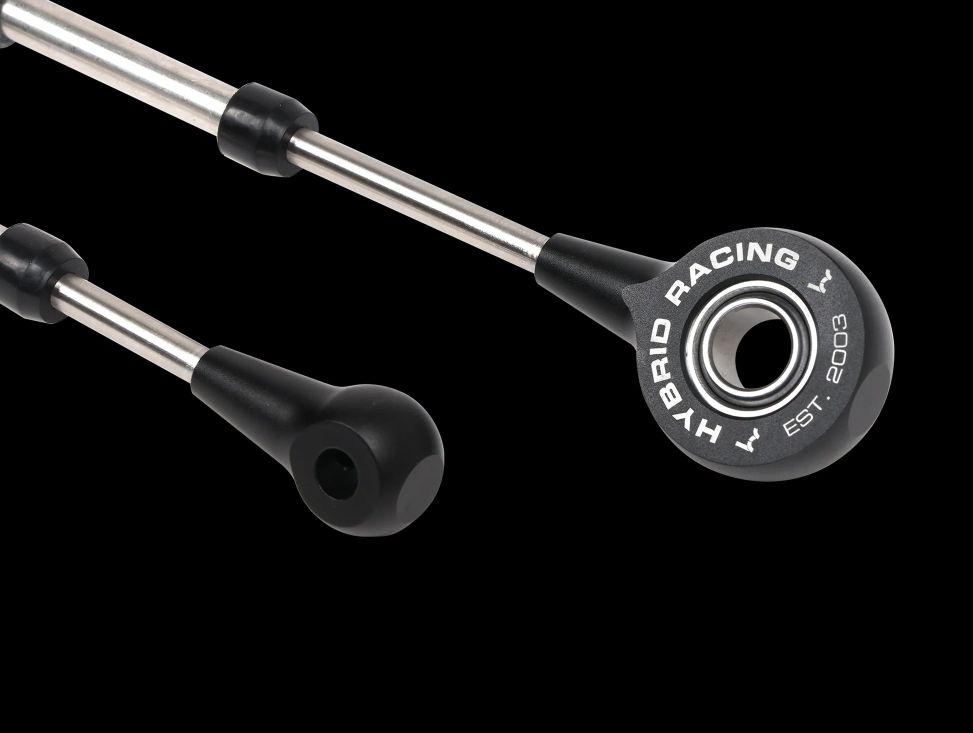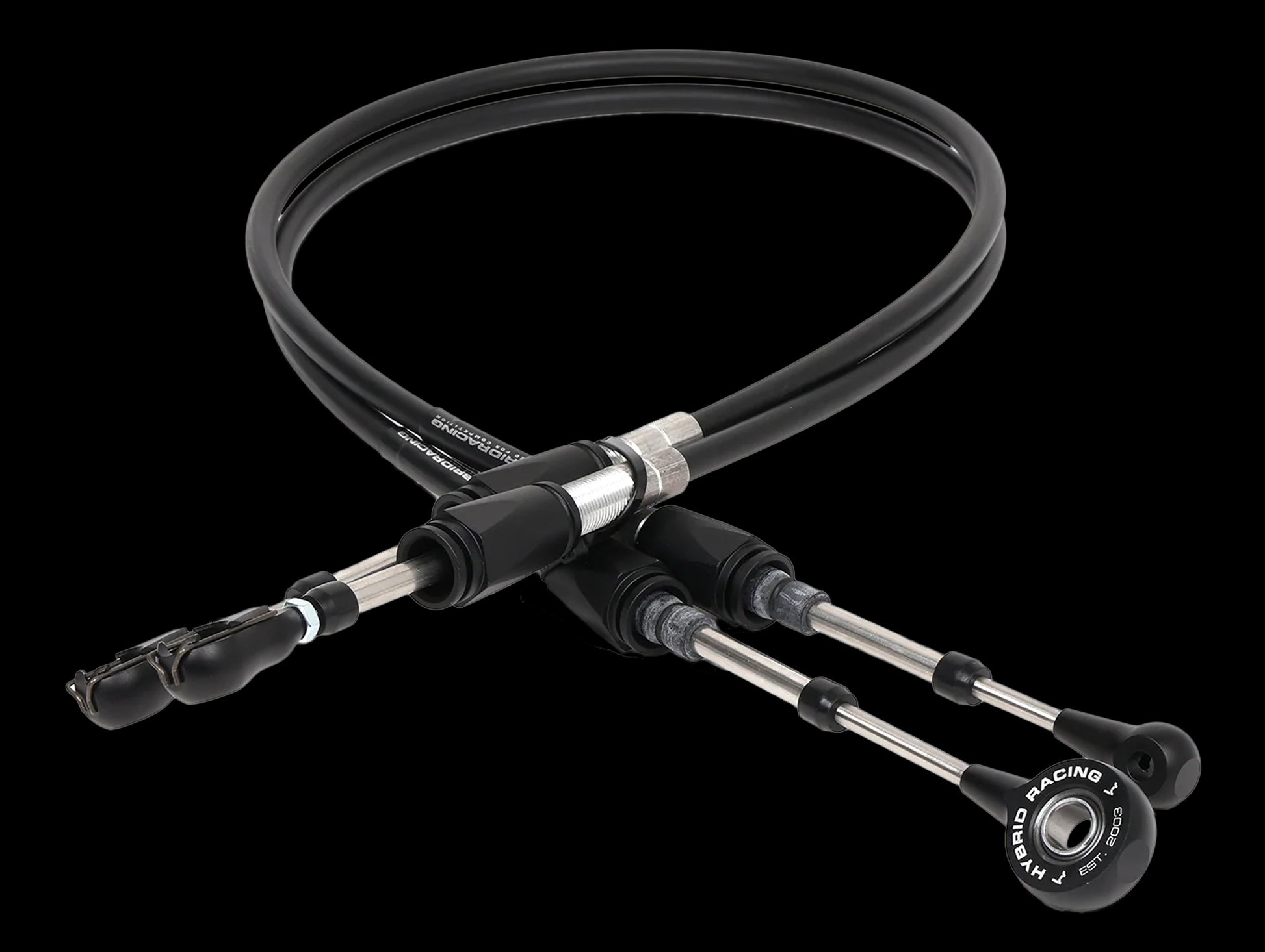 Engineered for durability, each cable set includes stainless steel push rods, stainless steel swivel support tubes (OEM uses plastic), and CNC-machined 6061 aluminum rod ends and mounting bushings. These components are heat-treated, anodized black, and laser-etched with the Hybrid Racing logo. All Hybrid Racing cables are proudly manufactured and assembled in the USA.