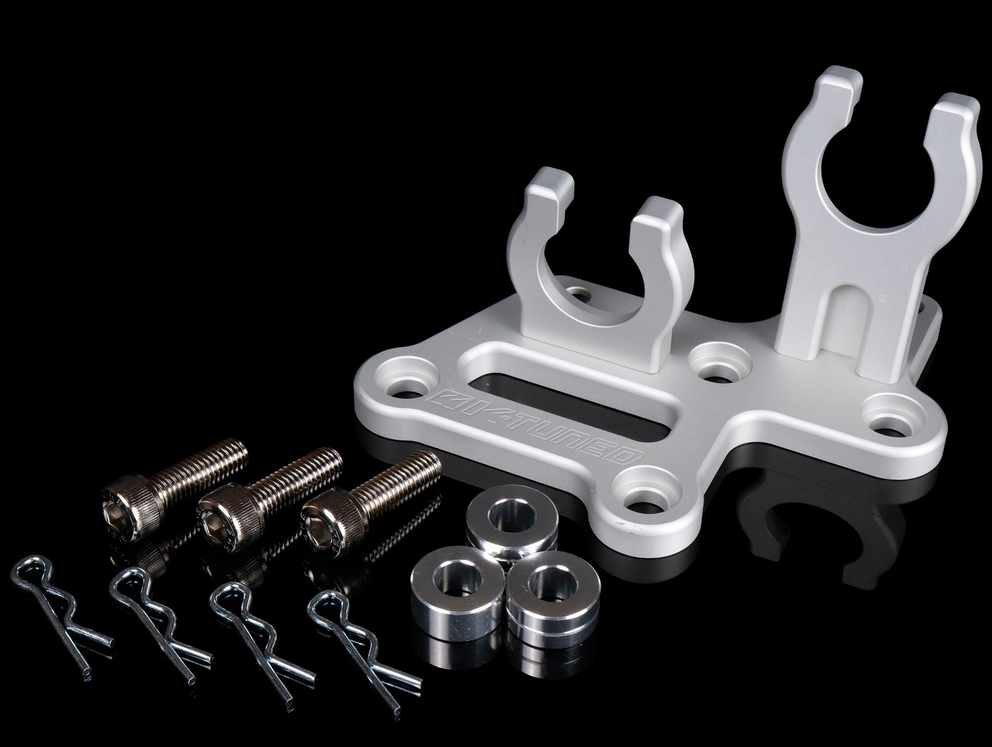 K-Tuned had the idea to make a nice replacement Shifter Cable Bracket for quite some time now. While they were developing their Billet RSX Shifter and Race Shifter Cables, it made sense for them to work on a cable bracket at the same time. After testing a few prototypes of different materials, they couldn't get the bracket to look the way they wanted. In the end, they decided to get it made with 6061 billet aluminum on the CNC machine. The bracket can be mounted on all RSX, EP3 and Civic SI transmissions. It is designed to be used with any oem or aftermarket 2002-2004 RSX-S shifter and cables. The bracket can even be used on the newer 2006-2011 Civic SI (K20Z3) 6 speed transmission as long as a 2002-2006 RSX-S shift selector is also being used. Included with the bracket is 3 spacers needed for some of the different transmission options and 3 mounting bolts. Now you can replace the rusted out factory bracket with a nice anodized billet bracket that will last.