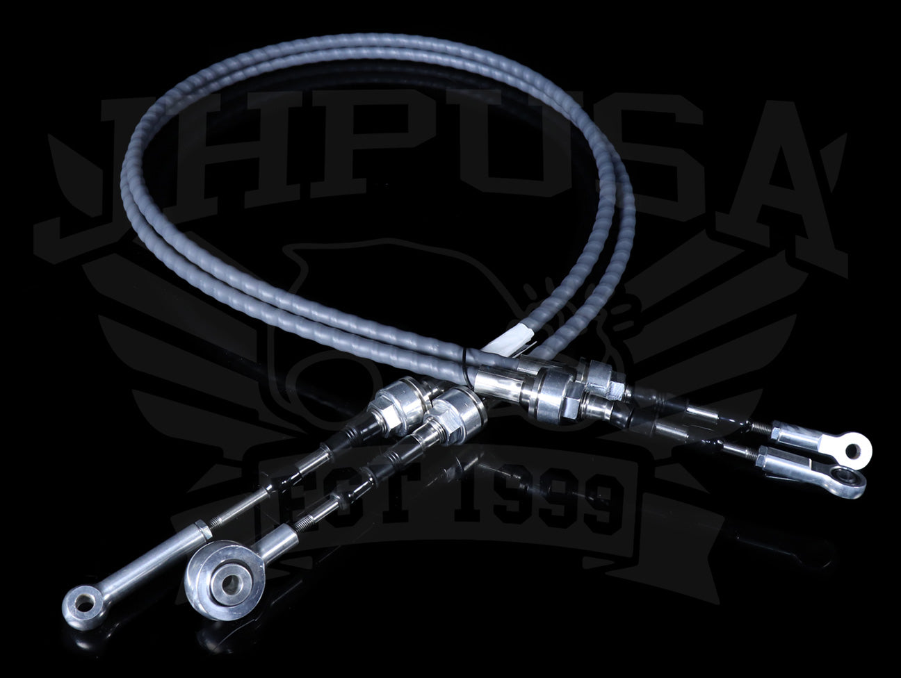 All kits include a billet bracket that adapts the shift cables to the transmission with the proper approach angles leading to the shift selector. These angles are critical to fitment and smooth cable operation. To solve the length problem K-Tuned made an extended billet rod end that adds approx. 2" to the cable. This extension is installed by simply cutting off the existing rod end on the short cable and using a die to tap a thread on it. Once threaded, the new extended rod end is put on with jam nut to lock it in place. The added length now allows both cables to run below the car side by side. If you do not have cables for your setup already, we have kits available with a set of our OEM or Race Spec Cables that are already modified for H-Series shifting. This will also be helpful for customers who are not as confident doing the cable modification themselves.