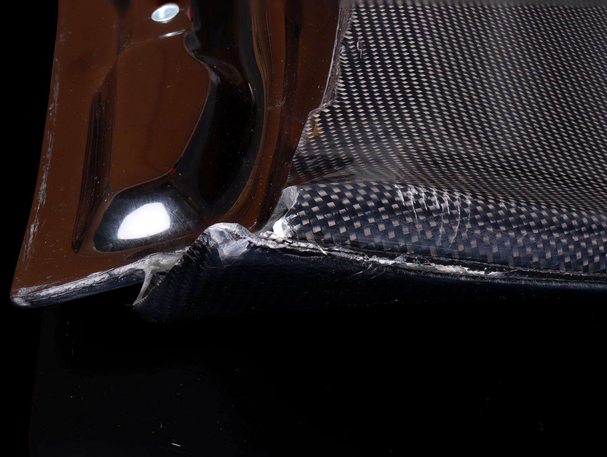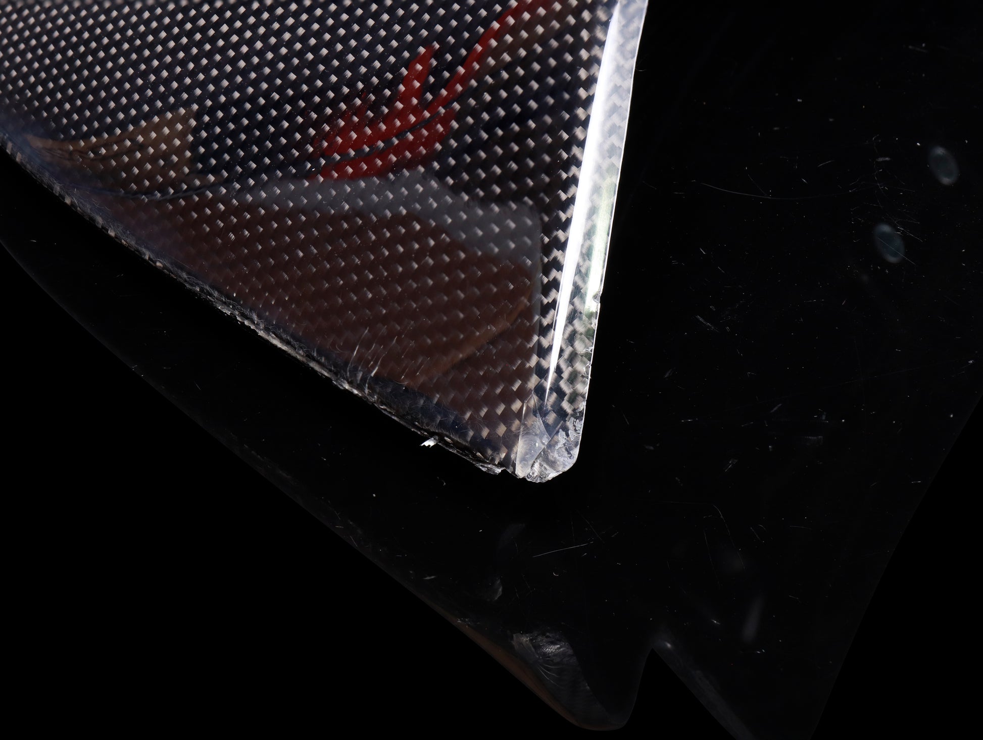 This Spoon Carbon Fiber Roof Spoiler for the 92-95 Civic Hatchback was damaged while shipping and exhibits a few cracks and chips off the corner of the wing as shown in the photos.