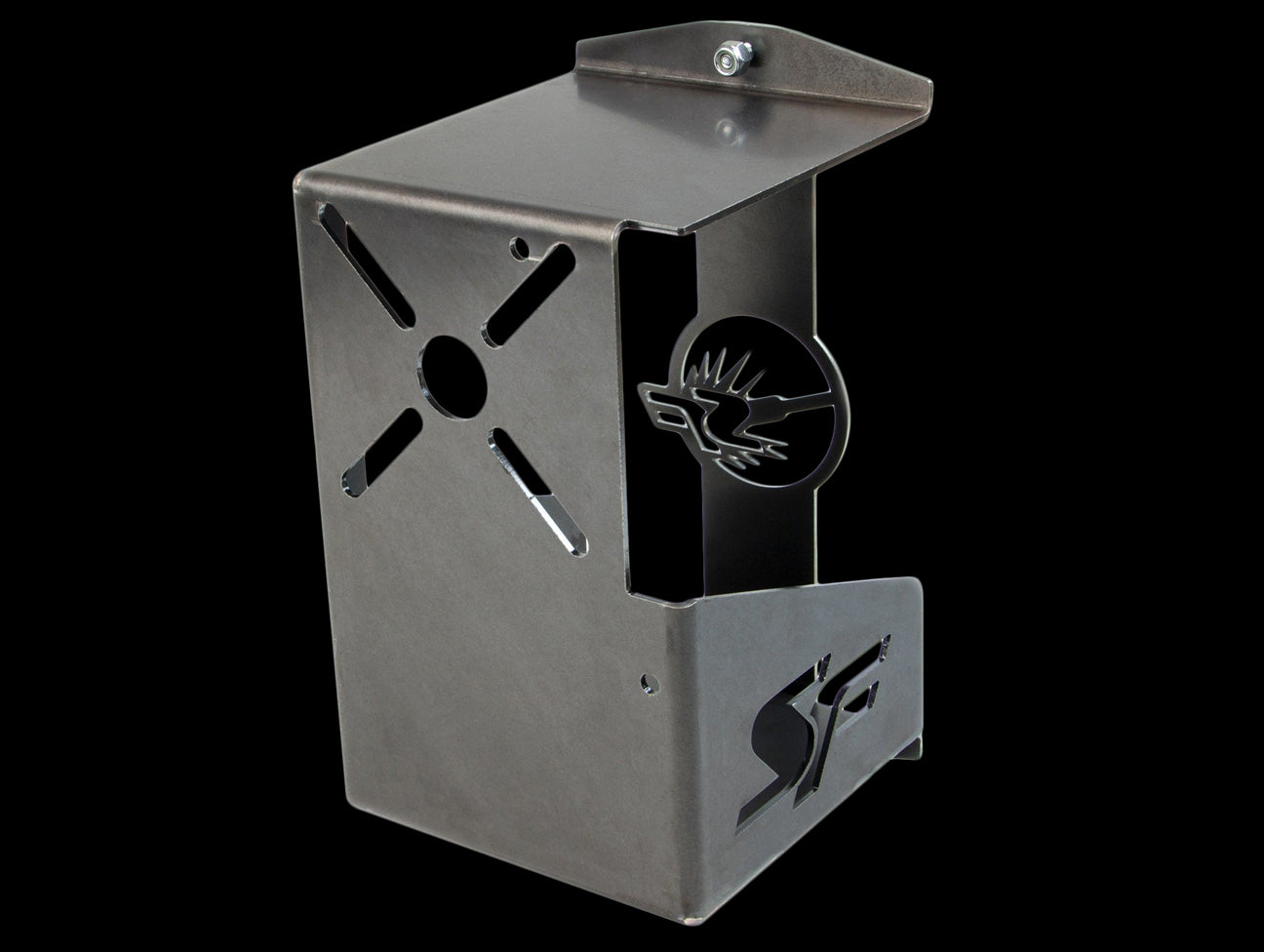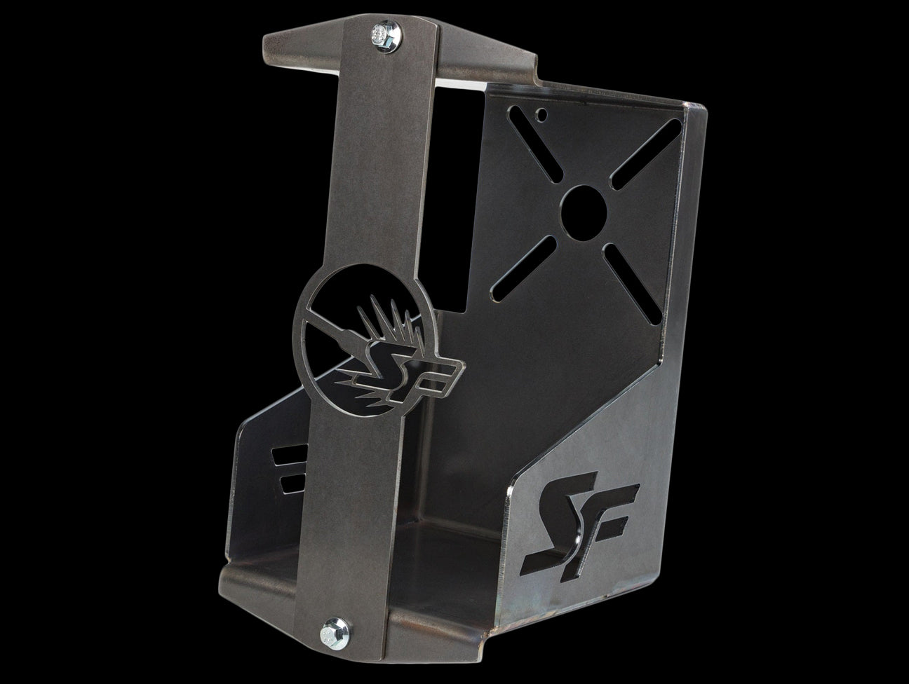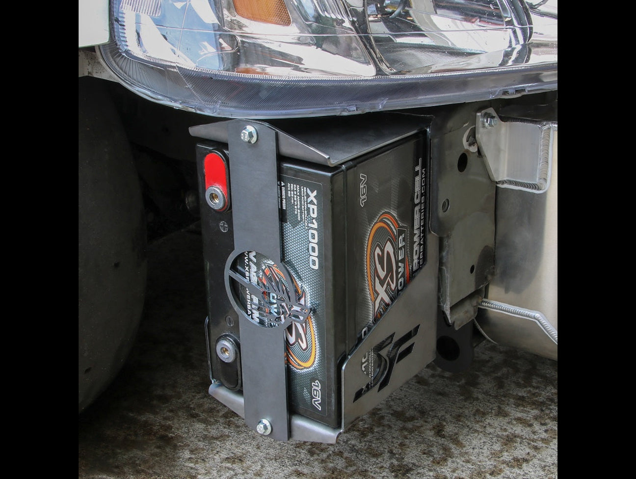 The SpeedFactory Racing 16V Battery Box is designed for passenger or driver's side framerail mounting and for use with XS Power 16V AGM lead acid batteries - models XP1000, D1600, and S1600. There are very slight differences in the case sizing between these models but all of them will fit the SpeedFactory battery box.
