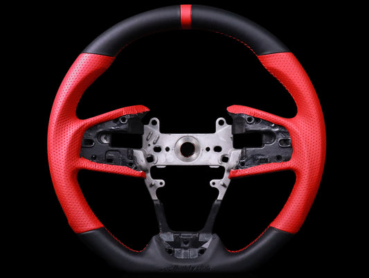 Buddy Club Racing Spec Leather Red Steering Wheel - 16-21 Civic / 17-21 Civic Type-R FK8