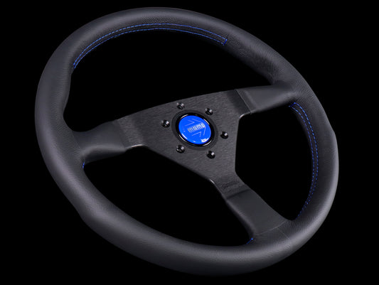 Momo Monte Carlo Steering Wheel - Black Leather w/ Blue Stitch