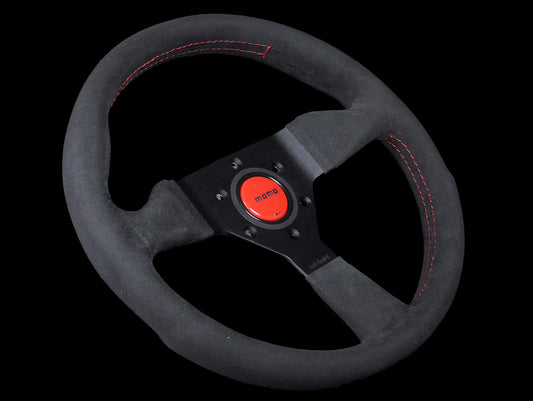 Momo Monte Carlo Steering Wheel - 350mm Black Alcantara Suede w/ Red Stitching