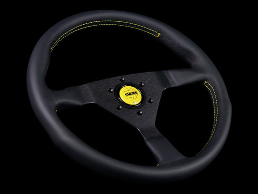 Momo Monte Carlo Steering Wheel - Leather w/ Yellow Stitch