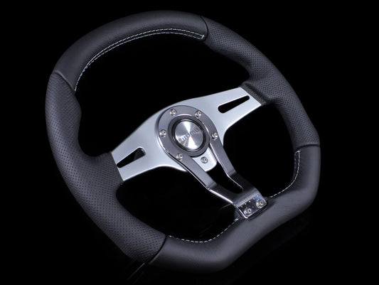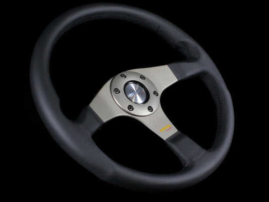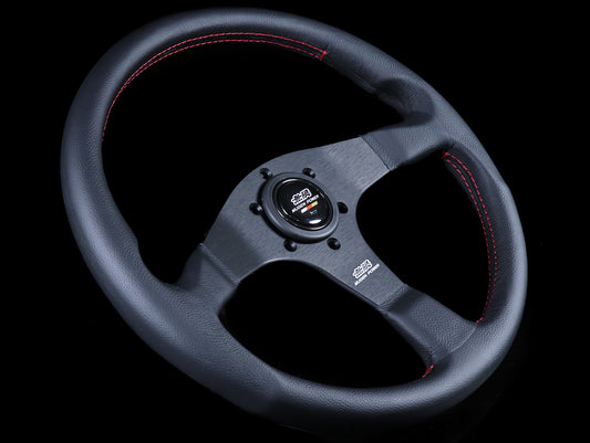 Mugen 350mm Racing 3 Steering Wheel - Black Leather / Red Stitch