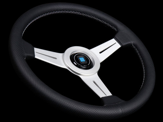 Nardi Classic 340mm Steering Wheel - Black Perforated Leather / Silver Spokes / Grey Stitch