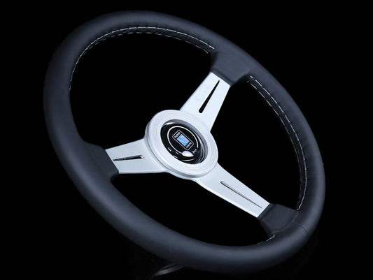 Nardi Classico Satin 365mm Steering Wheel - Black Leather / Satin Silver Spokes / Black Stitch
