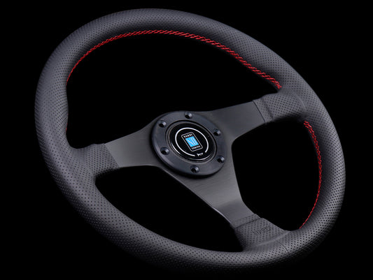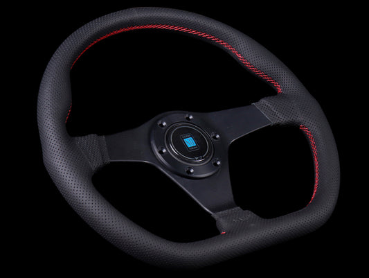 Nardi Gara 350mm Steering Wheel - Black Perforated Leather / Red Stitching