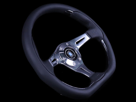 Nardi Challenge 350mm Steering Wheel - Black Leather / Black Stitch