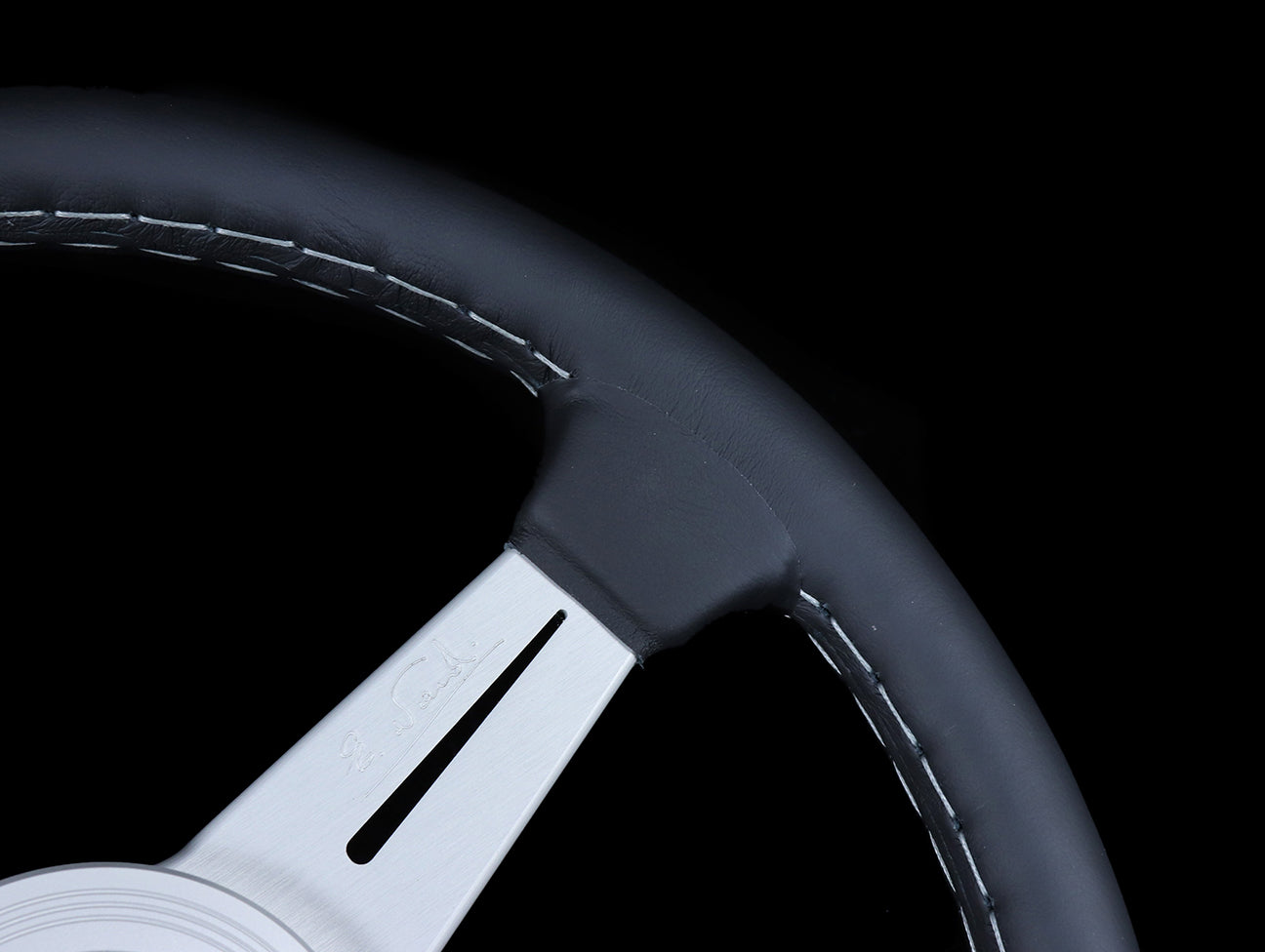 Nardi Classic 340mm Steering Wheel - Black Leather / Silver Spokes / Grey Stitch