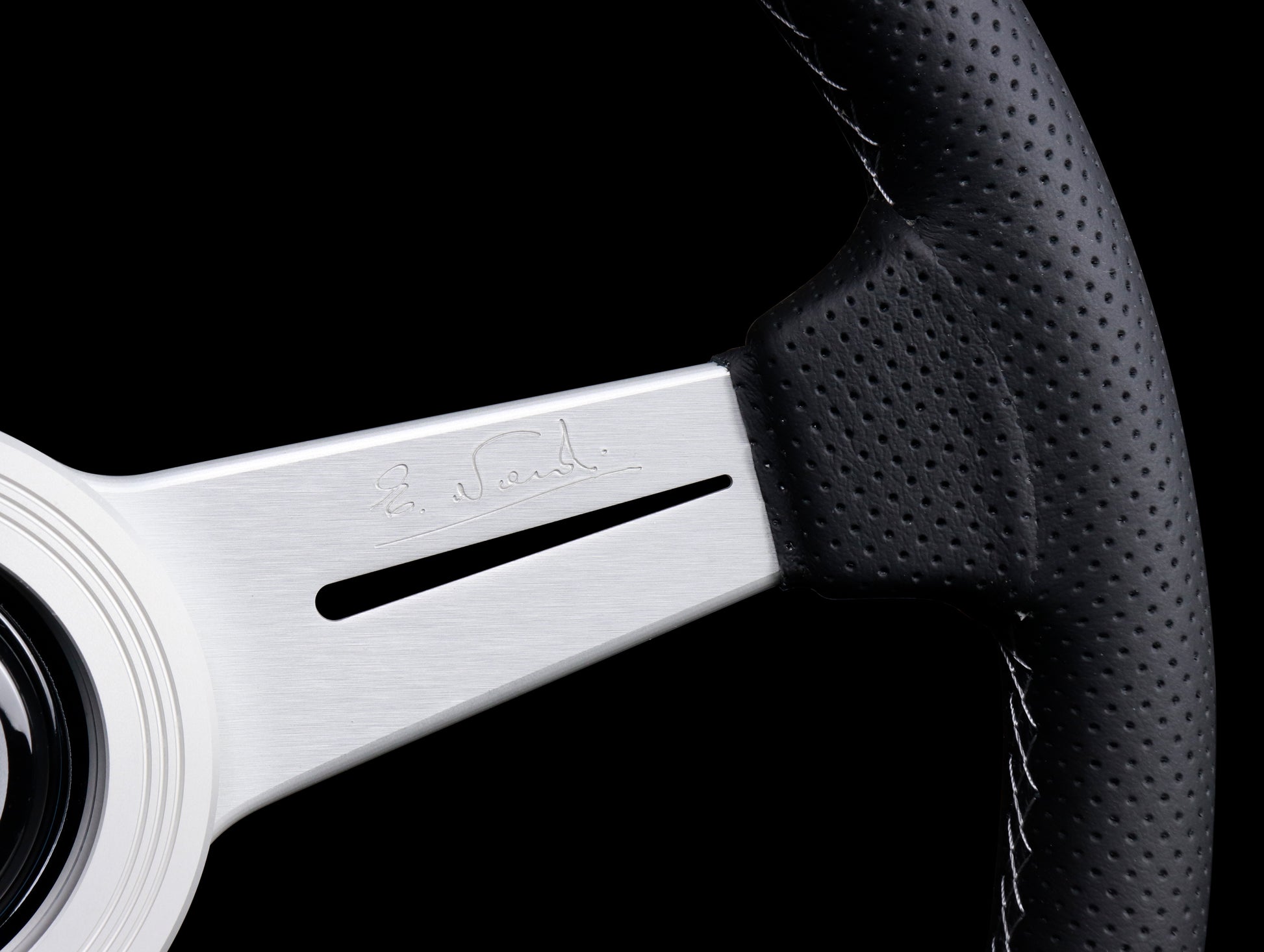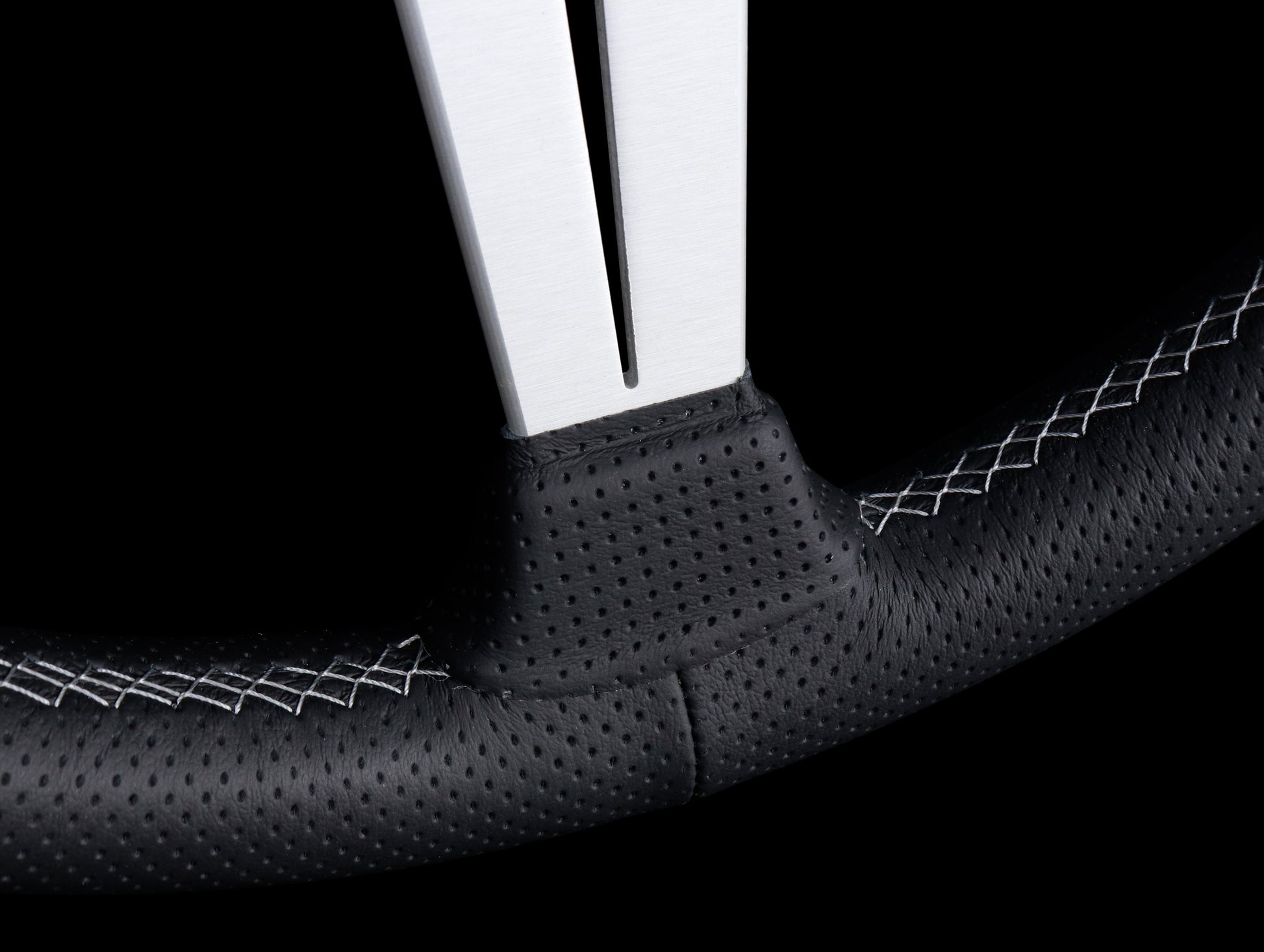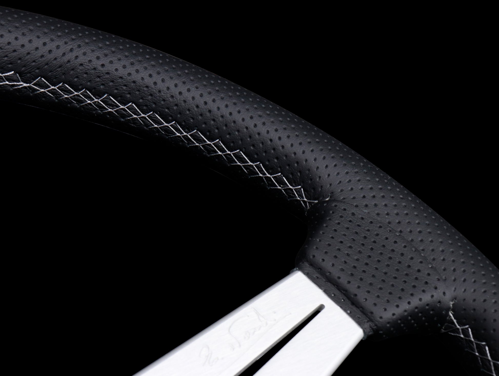 Nardi Classic 340mm Steering Wheel - Black Perforated Leather / Silver Spokes / Grey Stitch