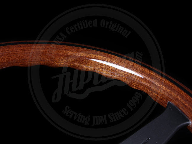 This Nardi Mahogany wooden steering is now available in 'deep corn' style (concaved spokes). This wheel offers smooth finished mahogany wooden grips, anodized black spokes, and includes a genuine Nardi horn button. Mounting hardware is not included.