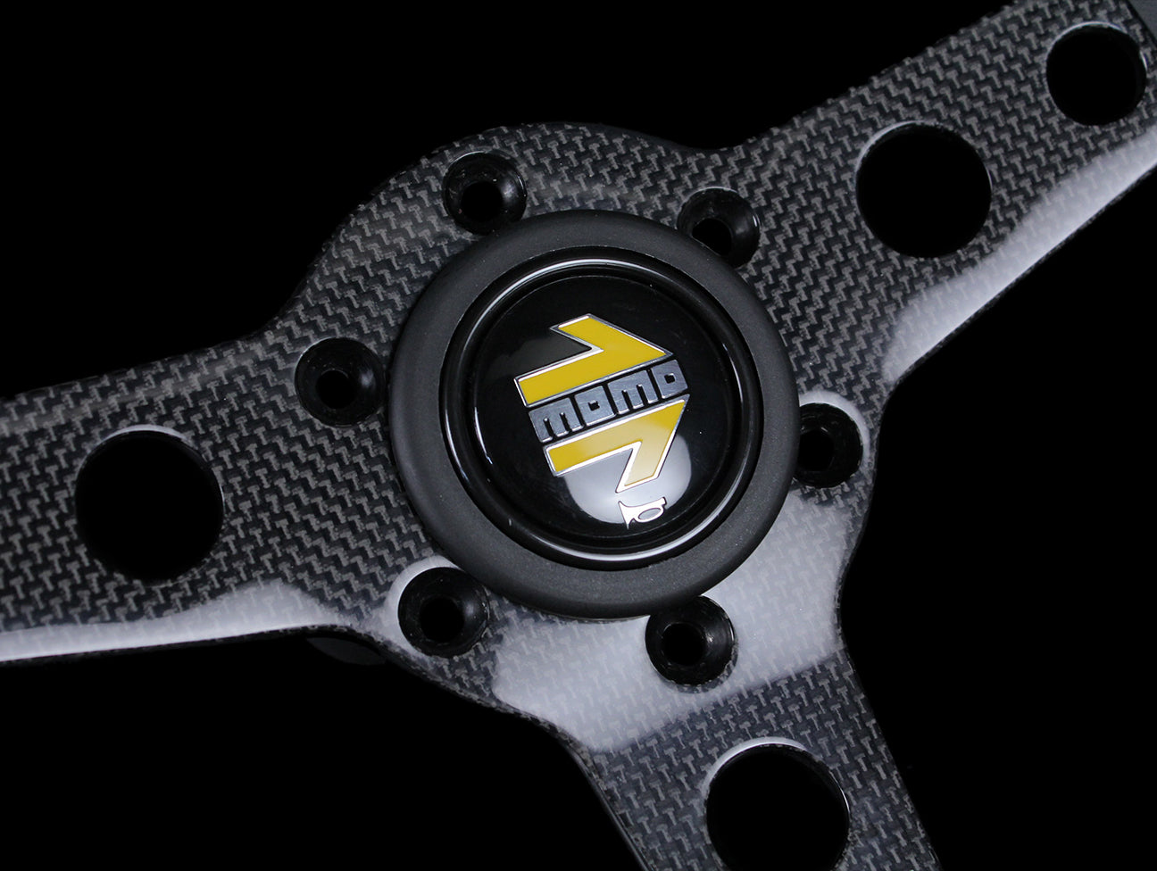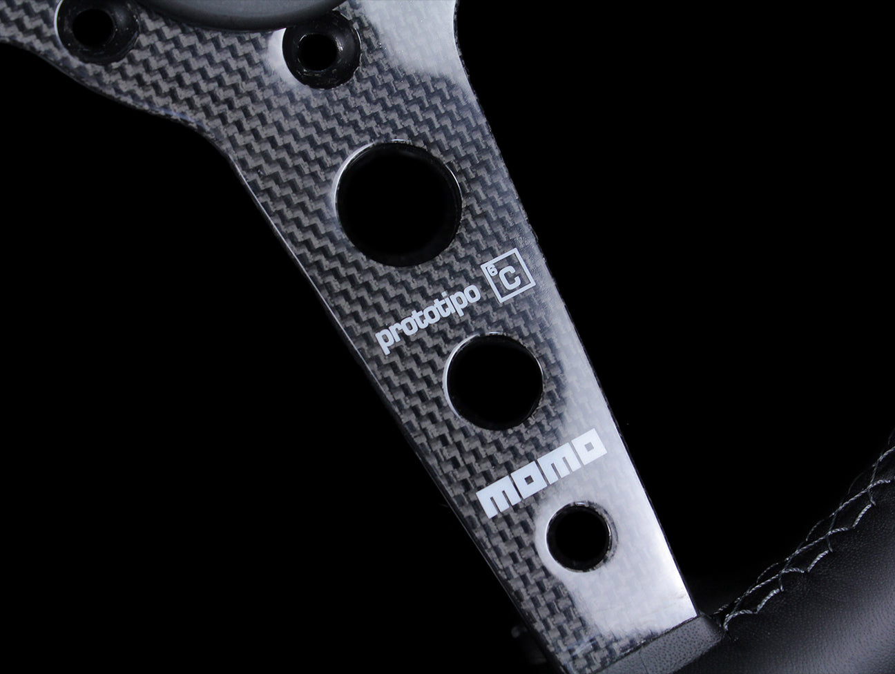 Introducing the carbon fiber MOMO Prototipo 6C steering wheel. This new Prototipo features spokes wrapped in genuine carbon fiber and uses premium quality leather for the grip. The hides are individually selected from only the best suppliers to ensure they meet MOMO standards. The Motorsport stitching also illustrates the craftsmanship that goes into the MOMO Prototipo 6C steering wheel, contributing to the exclusive finish and feel of this item.