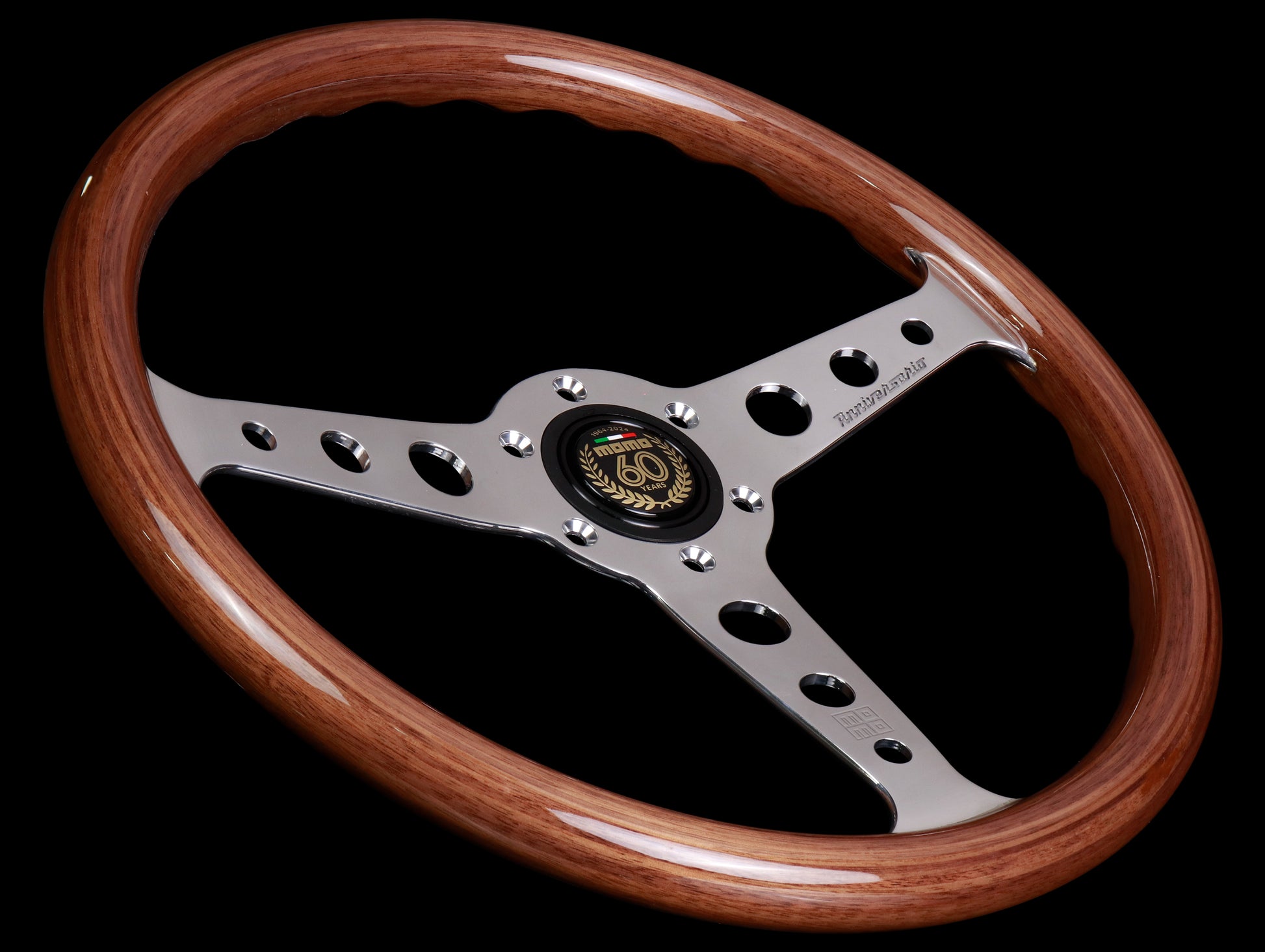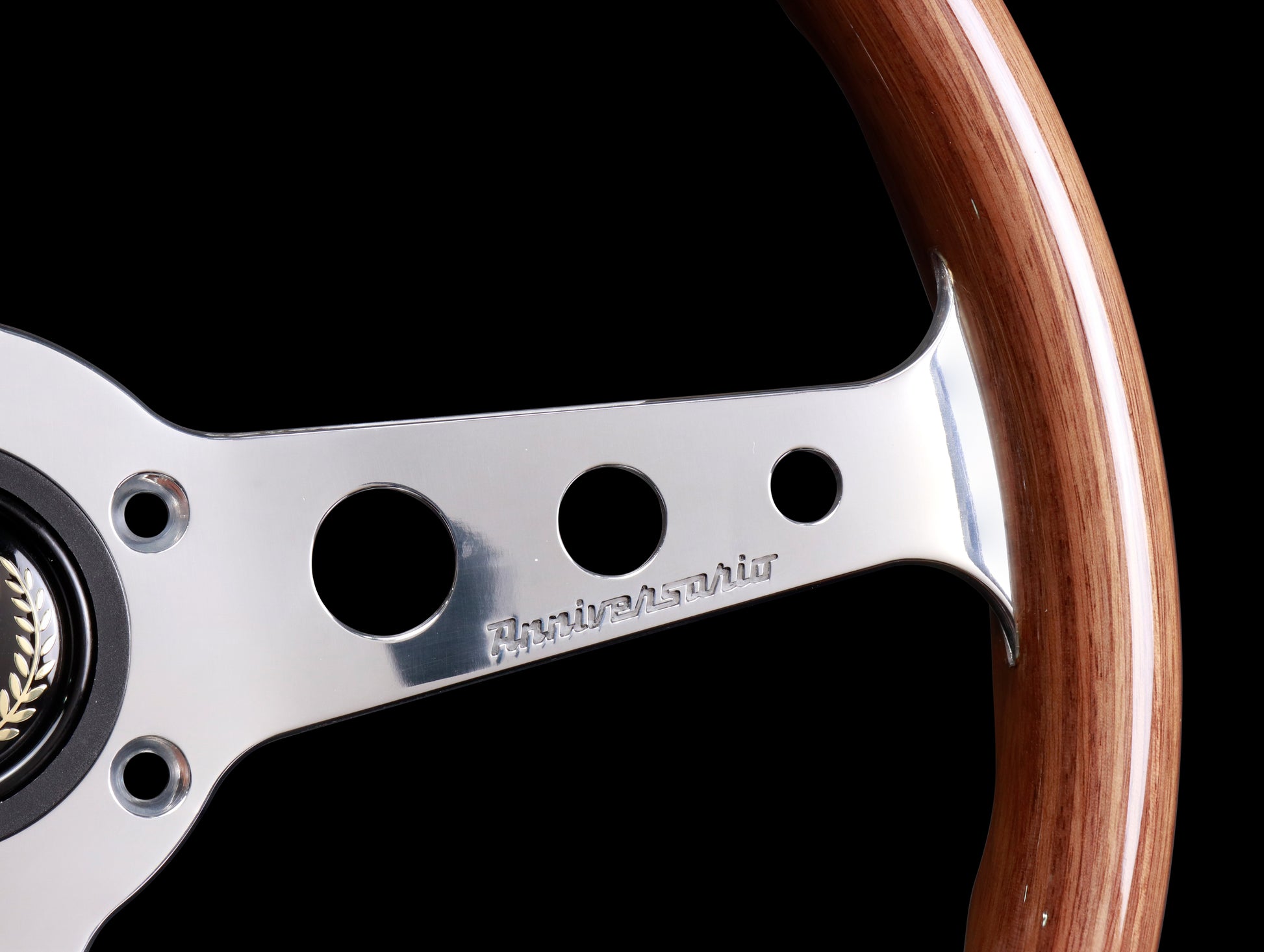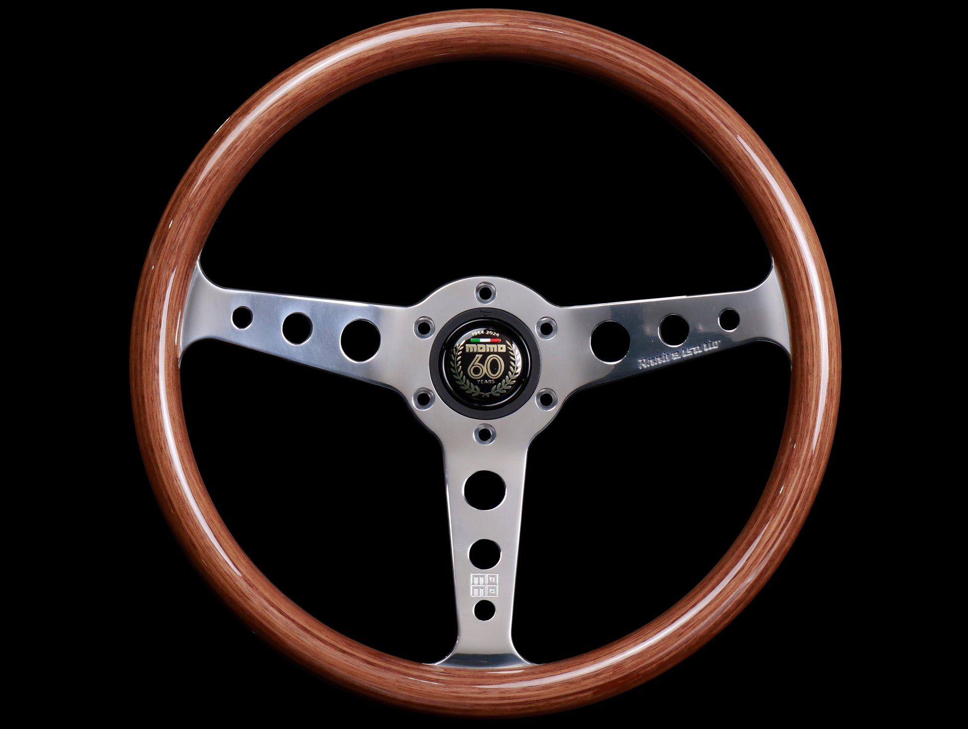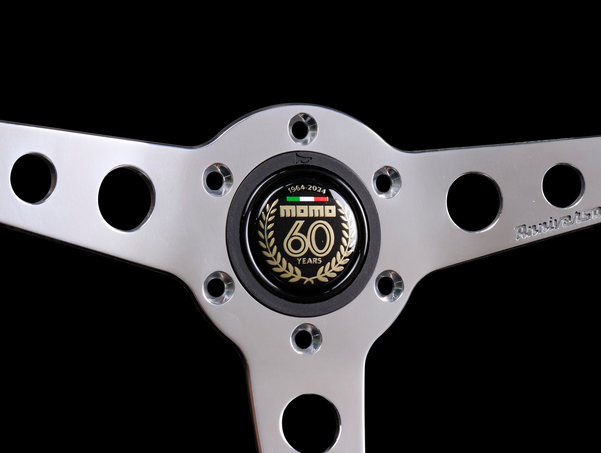 Be part of the final celebration release of MOMO's 60th anniversary with the Indy Anniversario Steering Wheel. This steering wheel is hand crafted with American Oak wood, polished spokes, and fitted with an exclusive Anniversario horn button and laser engravings. Limited to just 100 units, each wheel is a rare masterpiece. Add to your collection with this tribute to MOMO's legacy and become part of motorsports history.