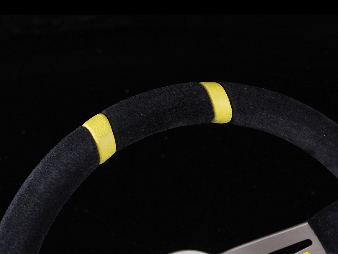 The MOD Drift provides the perfect interface for driver to car. The deep dish and 330mm diameter place the wheel in an optimal position for the quick steering adjustments required in Drifting. The generous round grip maintain comfort while the dual yellow markers provide quick reference guides.