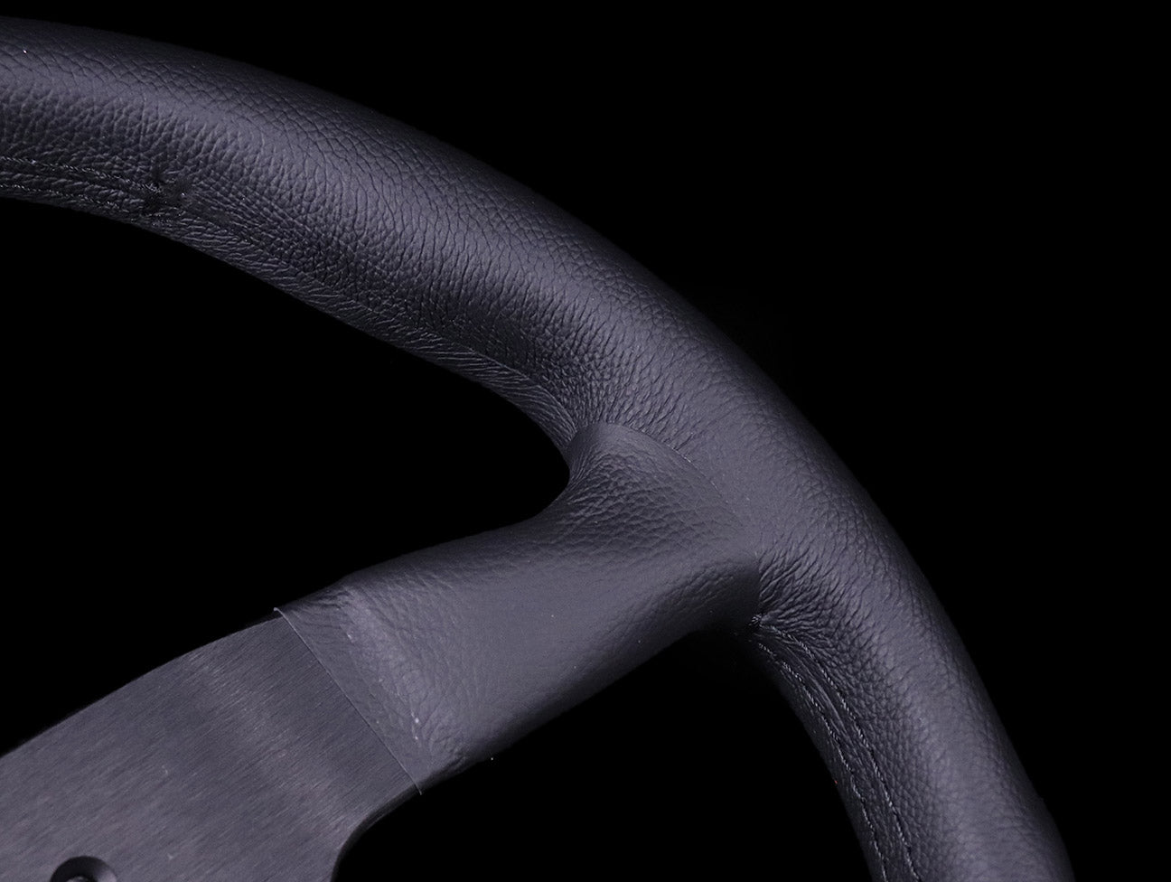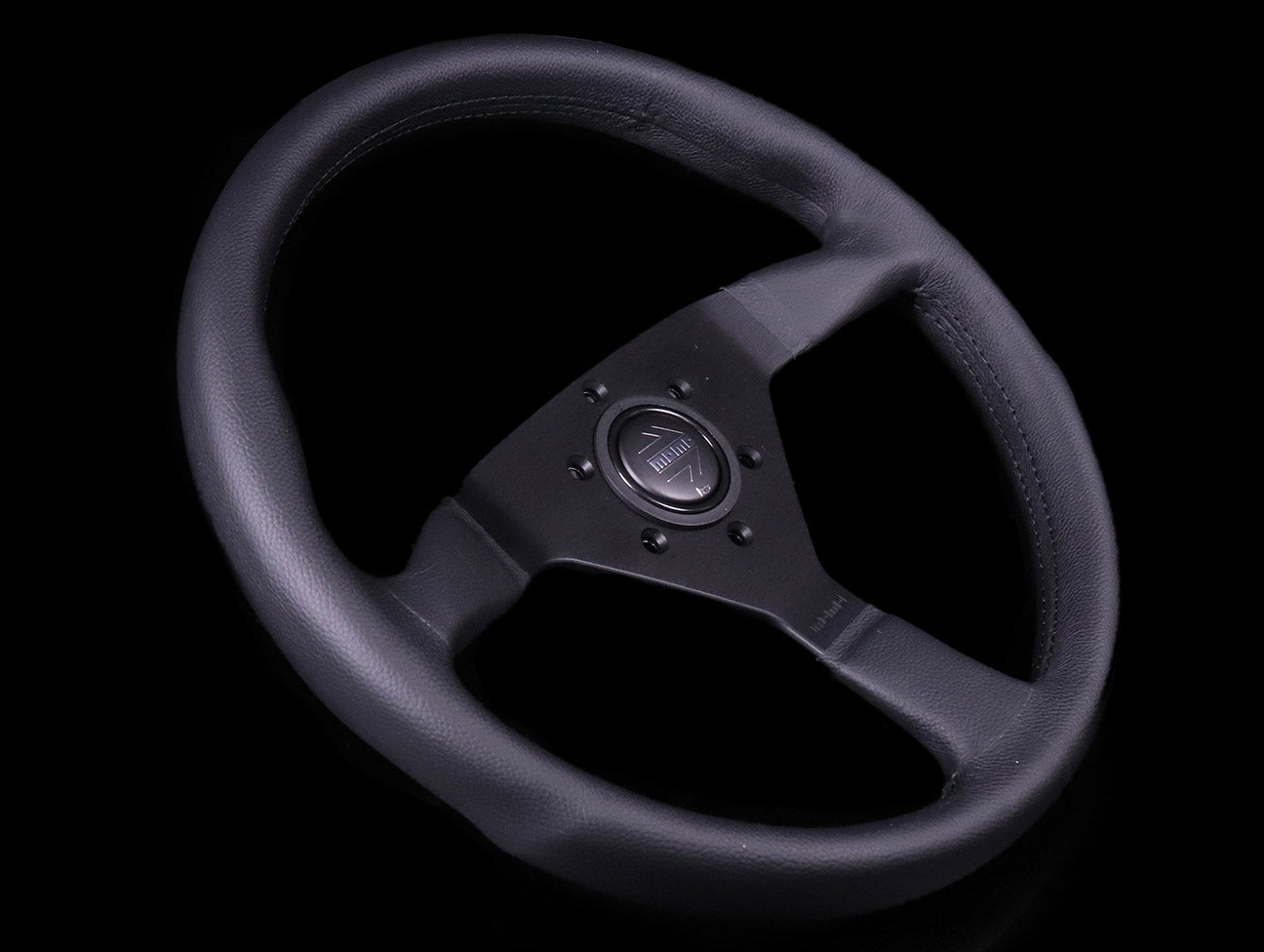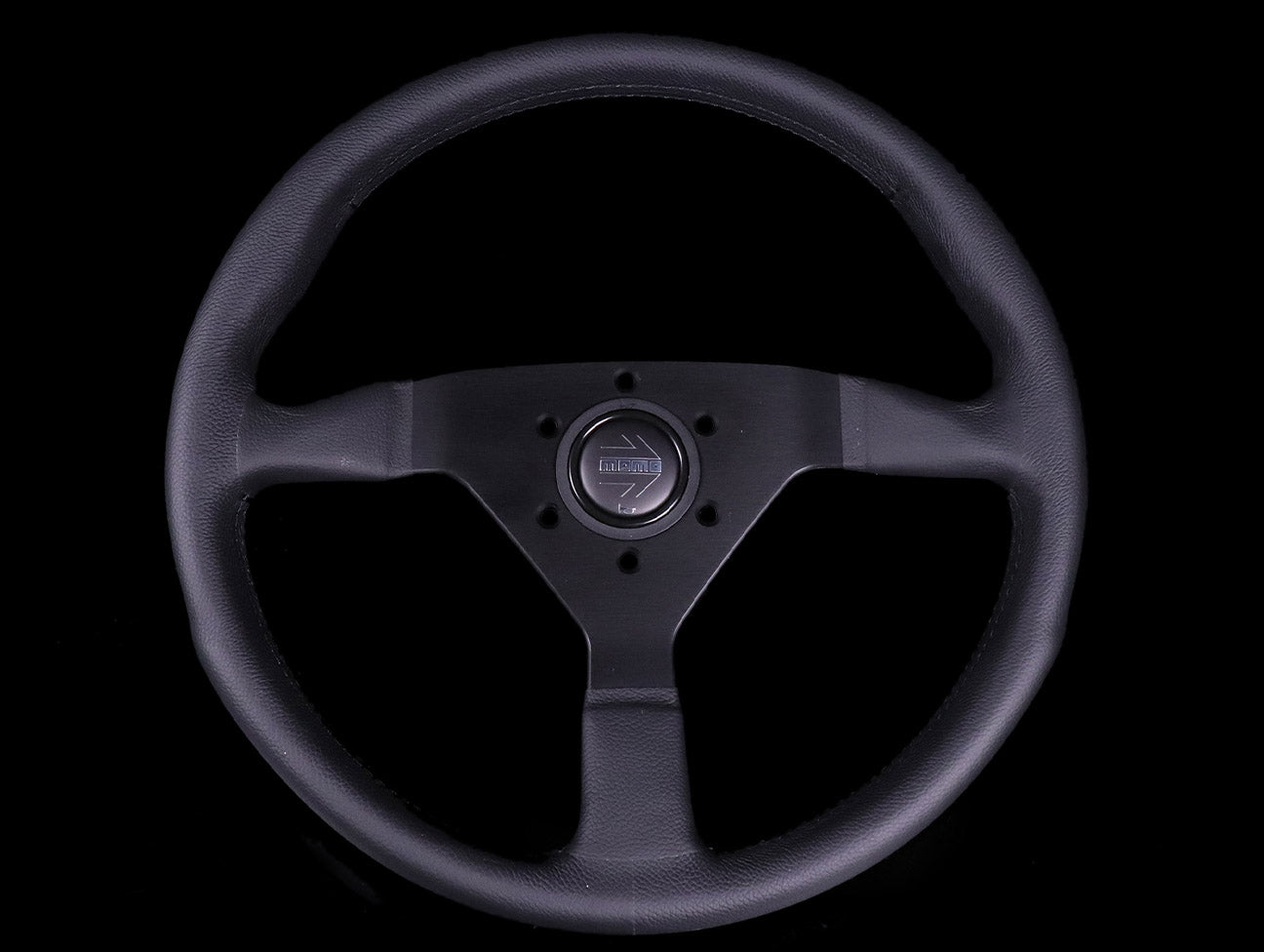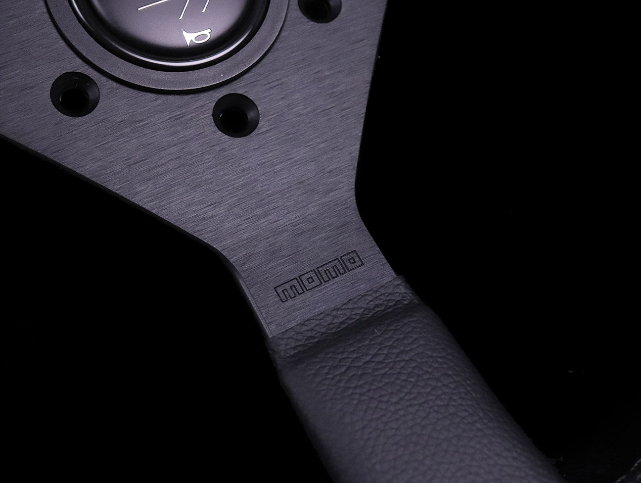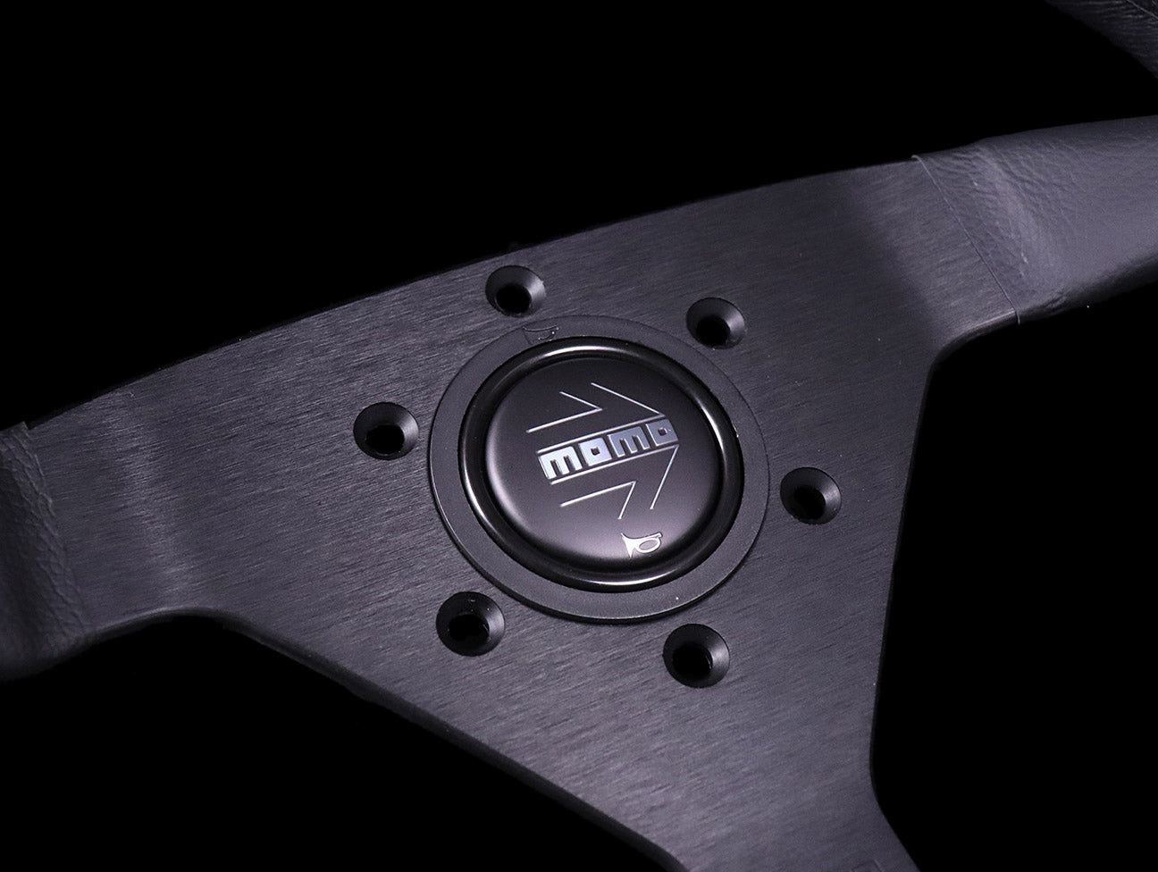 The classic Momo "Monte Carlo" steering wheel is wrapped in black leather with black stitching, updated horn button and is available in 320mm or 350mm diameter.