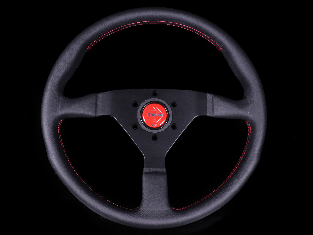 Momo Monte Carlo Steering Wheel - Leather w/ Red Stitch