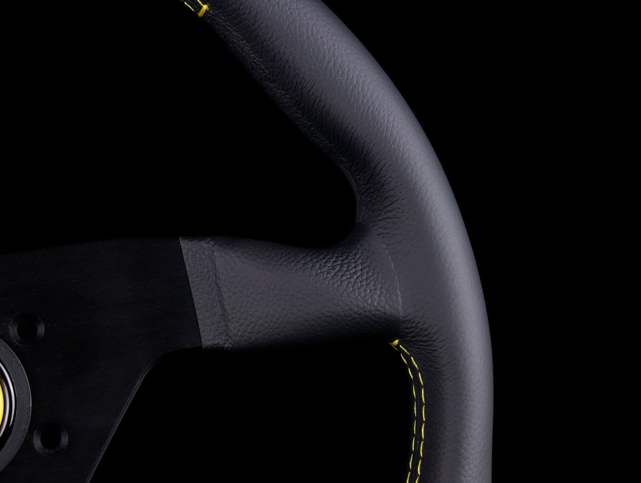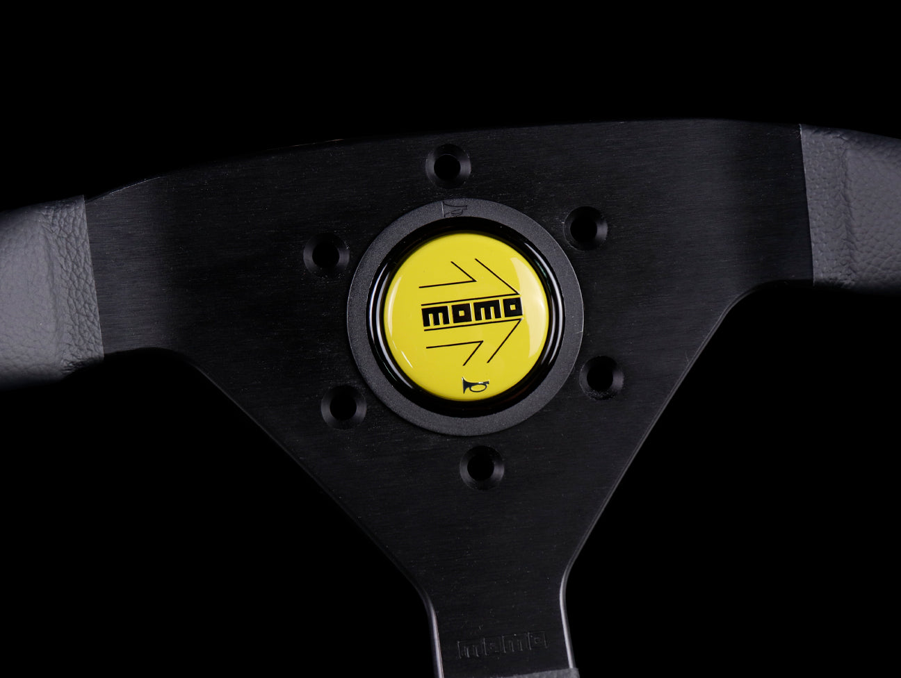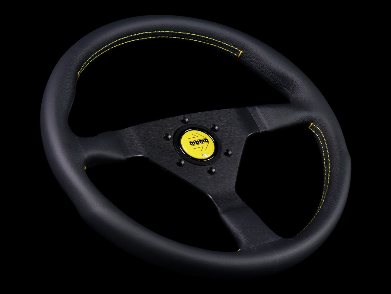 Momo Monte Carlo Steering Wheel - Leather w/ Yellow Stitch