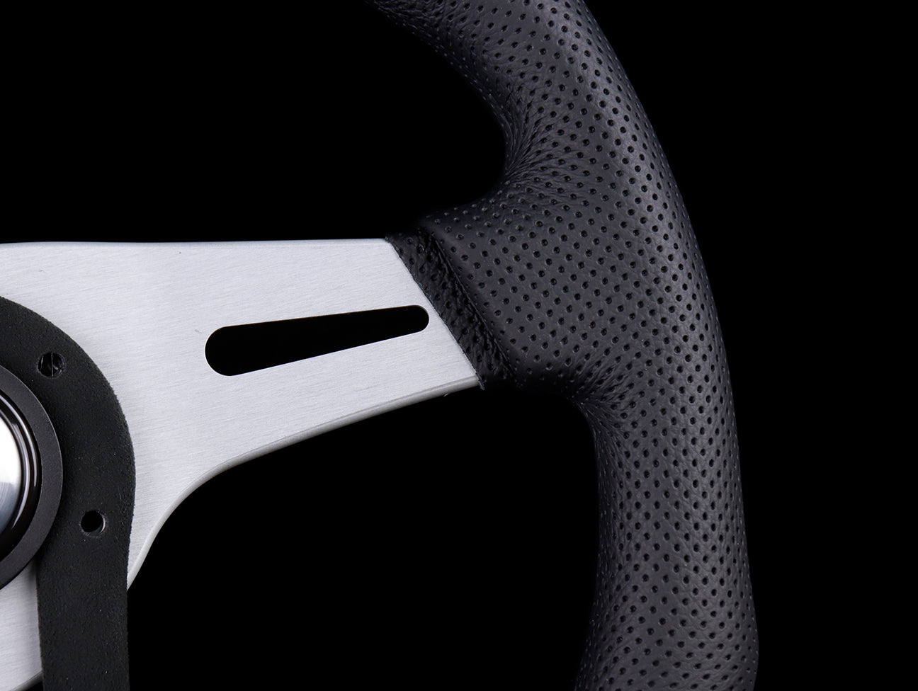 - Top grain black leather with Airleather (perforated) grips and gold Momo logo embroidery