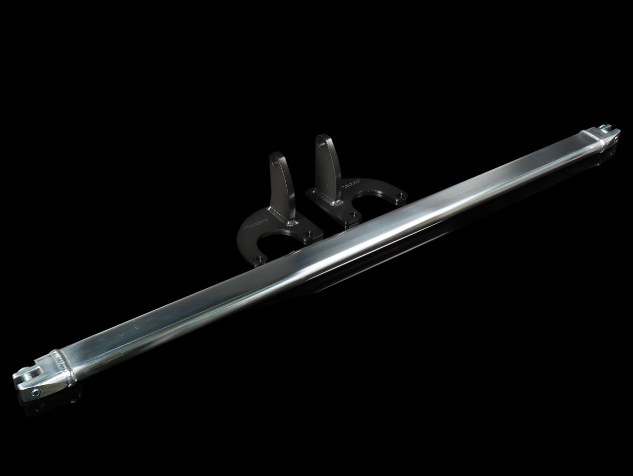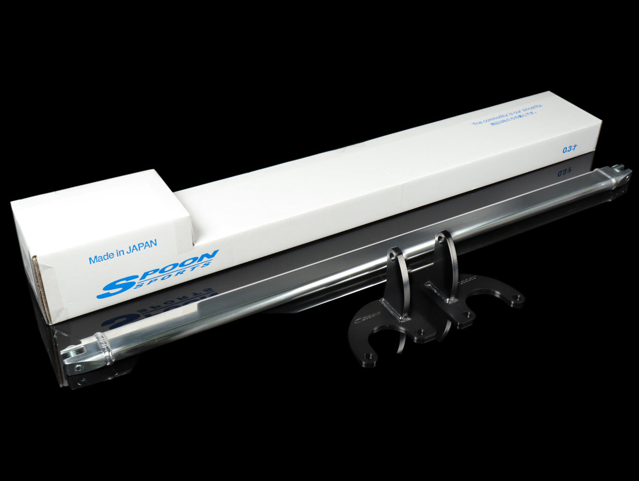 Spoon strut tower bars significantly increase chassis stiffness and handling response. The bars join the tops of the left and right dampers. In the front, this prevents the frame from flexing, increasing stiffness and improving handling and steering response. In the rear, stiffness is also increased, improving handling and reducing flex and creaking noise of the chassis.